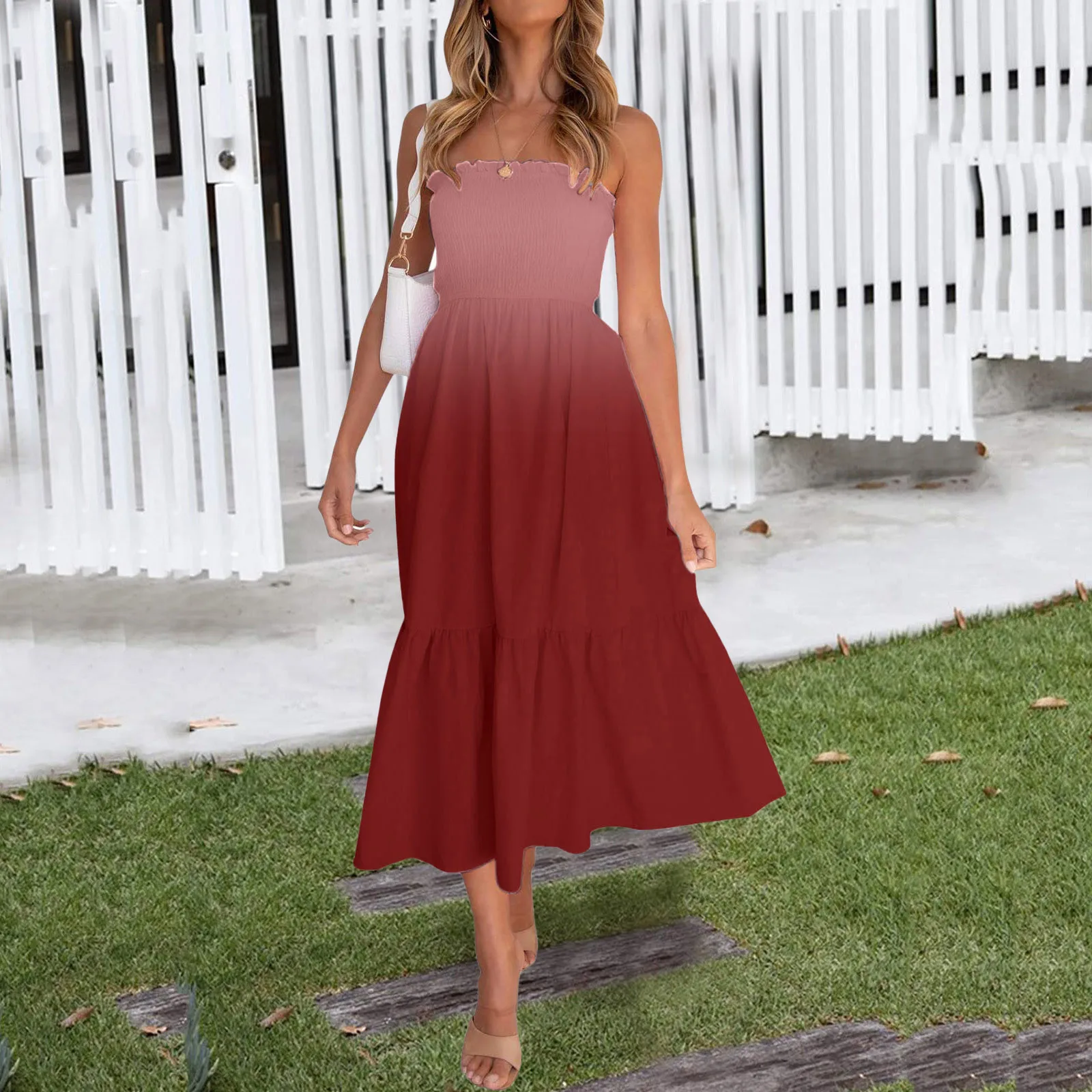 Женское платье в богемном стиле, элегантное однотонное Повседневное платье-футляр с открытыми плечами, облегающее платье с градиентным переходом цветов, для лета