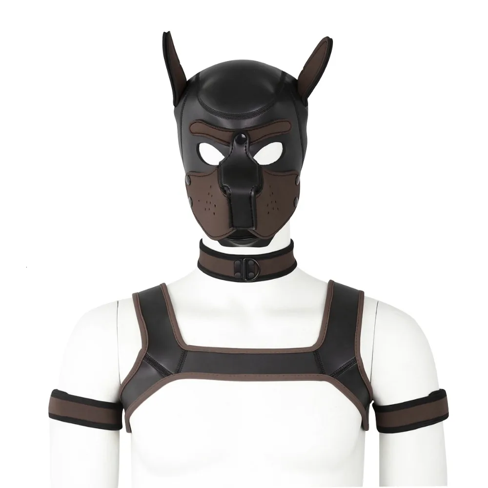 SMНабор для ролевых игр щенок играть собака капюшон маска, с круглой горловиной, бондаж Для мужчин ремешок для крепления на груди сексуальный костюм для взрослых, Секс-игрушки