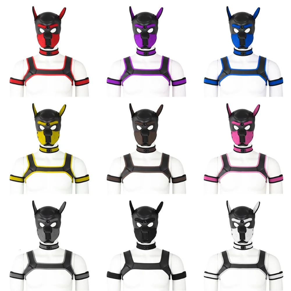SM Набор для ролевых игр, Щенячий патруль, маска с капюшоном для собаки, ошейник для шеи, бондаж, кожа, мужской нагрудный ремень, сексуальный костюм, фетиш, взрослые секс-игрушки