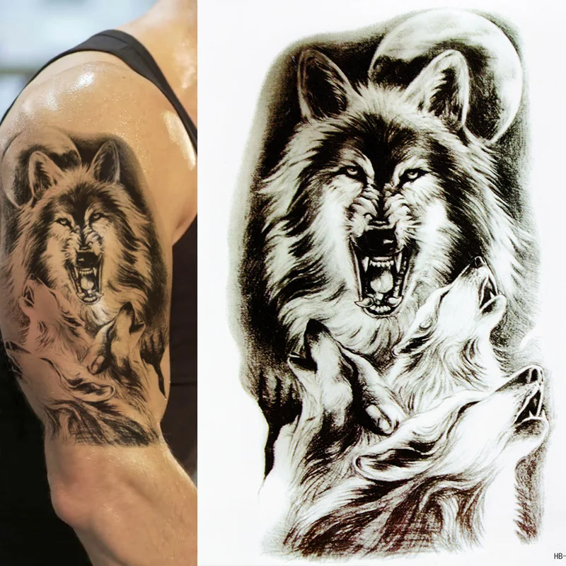Временная татуировка волка боди-арт мужские, женские, палка на тату...
