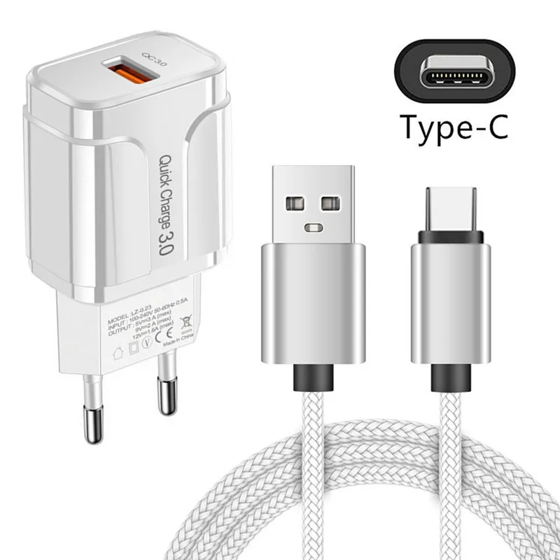 Быстрое зарядное устройство QC 3,0, USB-адаптер типа C, USB-кабель ...