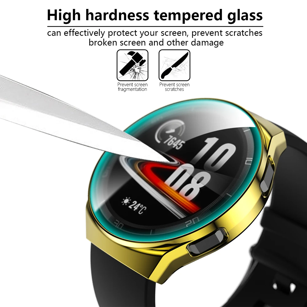 ПК закаленное стекло бампер полное покрытие Смарт-часы защитный чехол Корпус рамка для Huawei часы GT2e корпус протектор