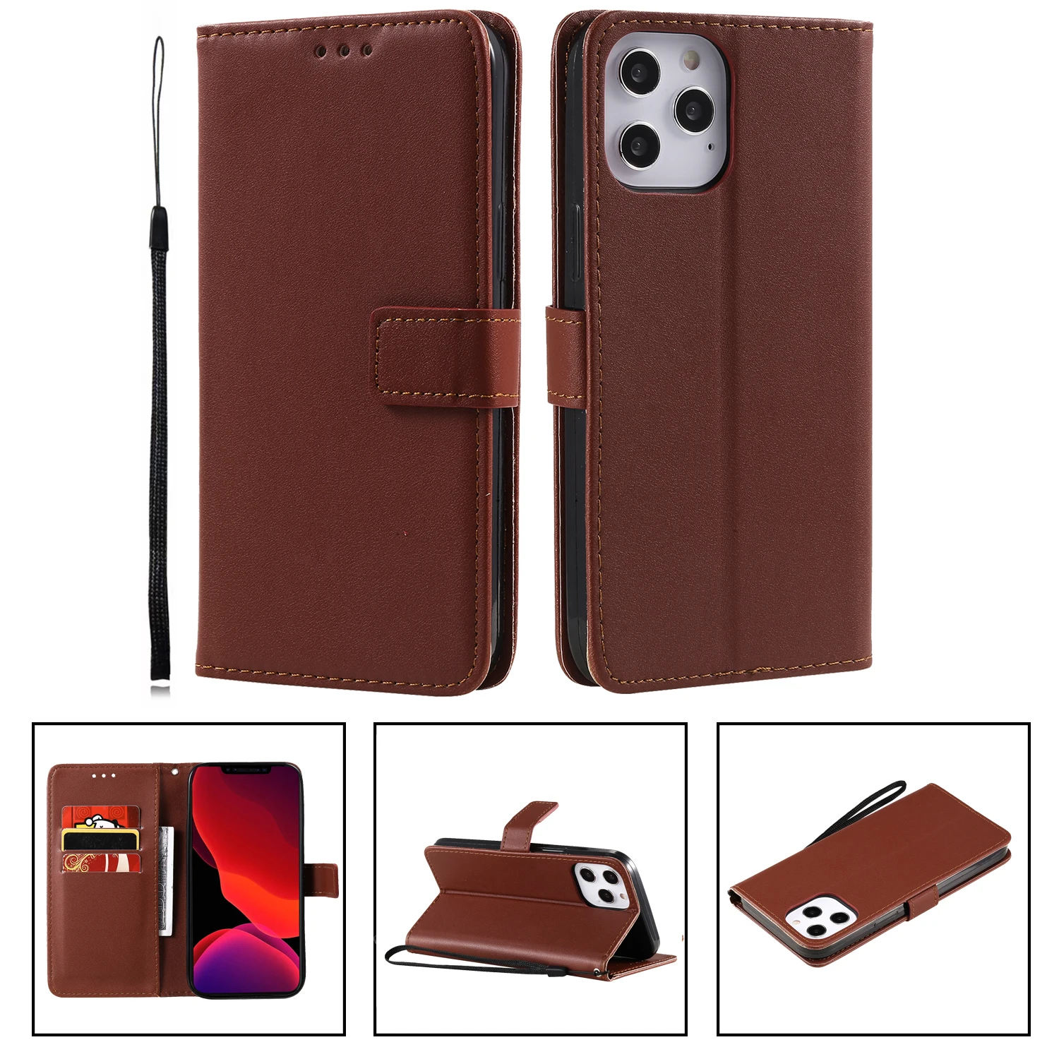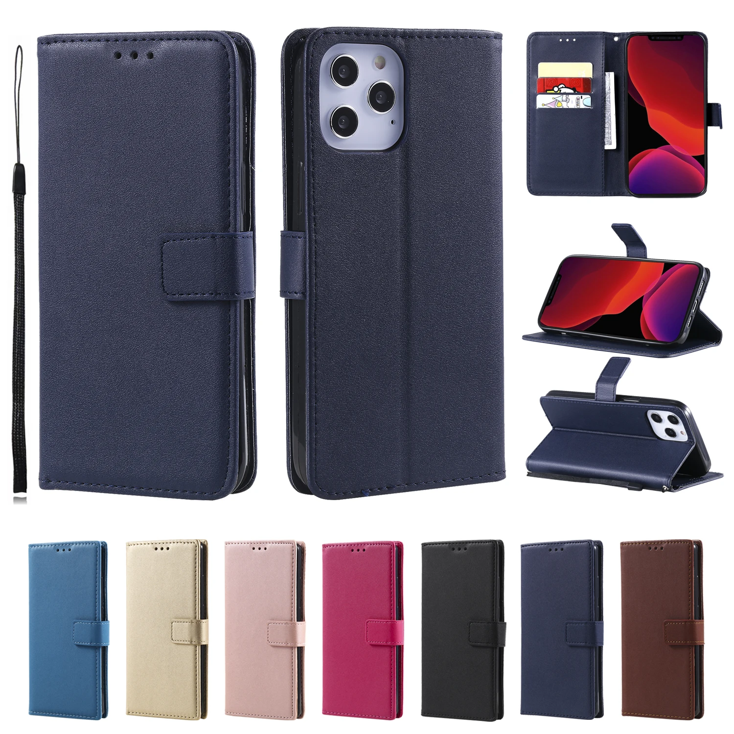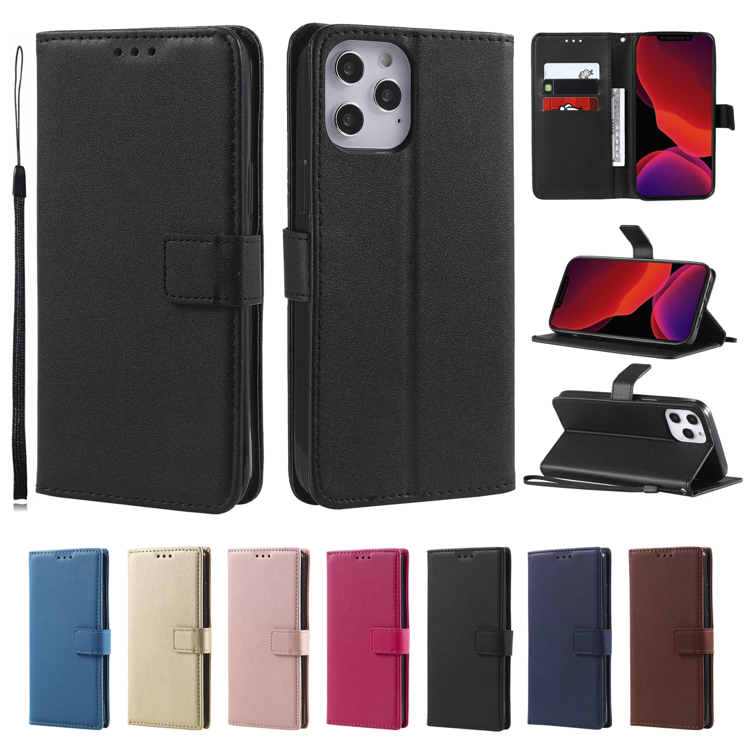 Кожаный чехол-бумажник с откидной крышкой для Iphone 13 6 6P 7 Plus SE2 11 11Pro Max 12Mini 12 Pro 5G 5C XR XS 4G слоты для карт подставка-держатель