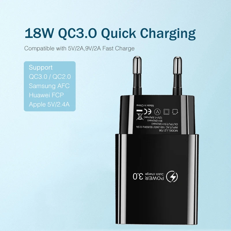 Номер модели706 QC 3.0 Fast Charging adapter EU Wall Plug Charger