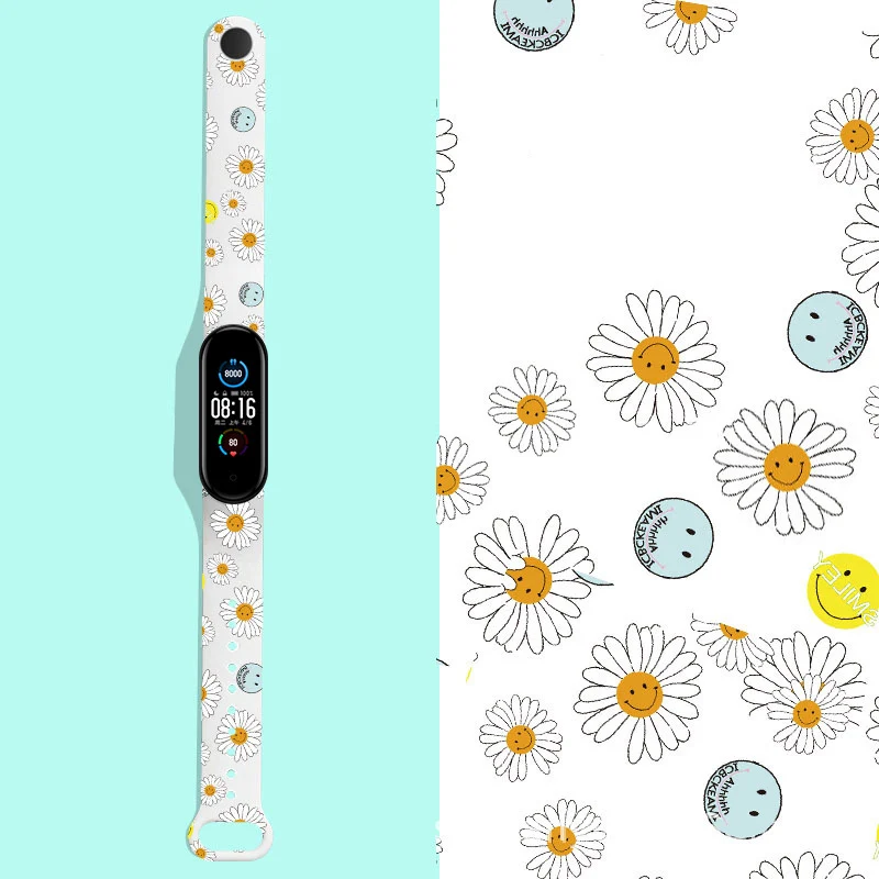 Силиконовый ремешок с рисунком маргаритки для Mi Band 6 5, браслет ...