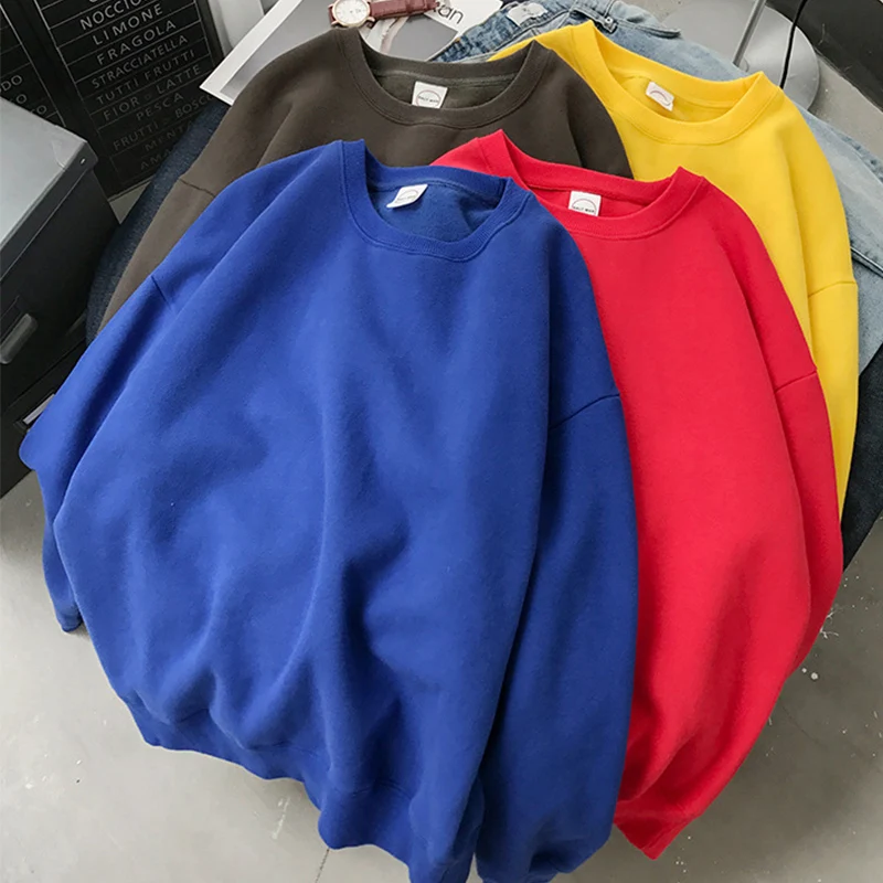 Однотонная парная толстовка с круглым вырезом, Свитшот оверсайз 202...