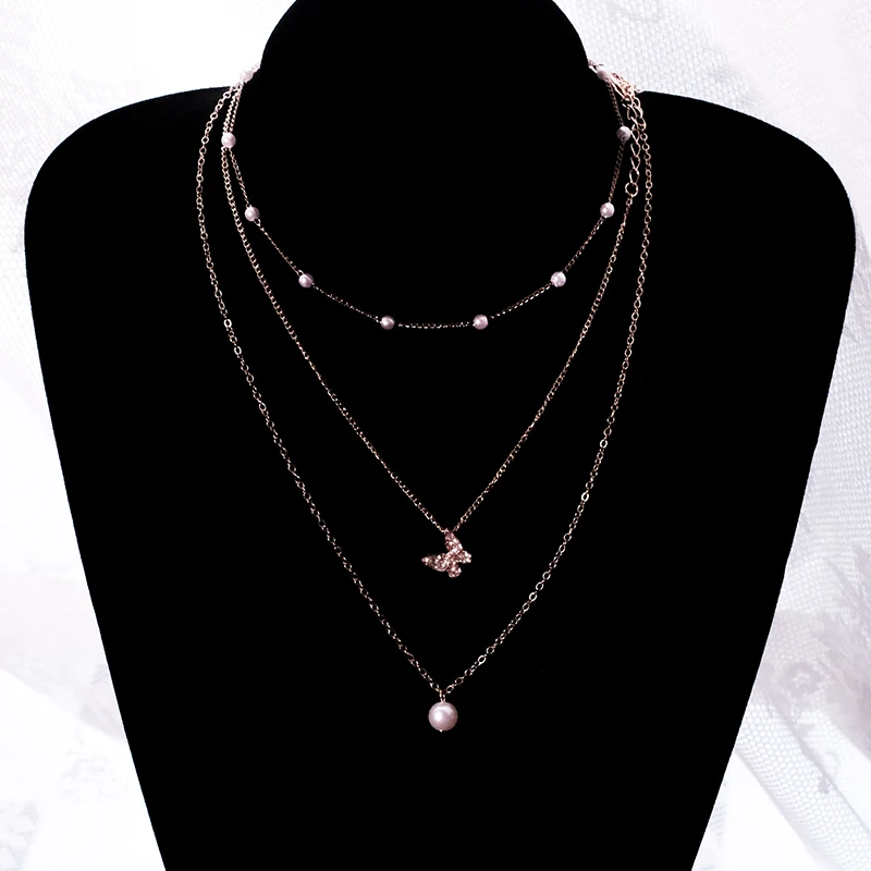 Ожерелье женское, многослойное, золотистое, с бабочкой и жемчугом, ...