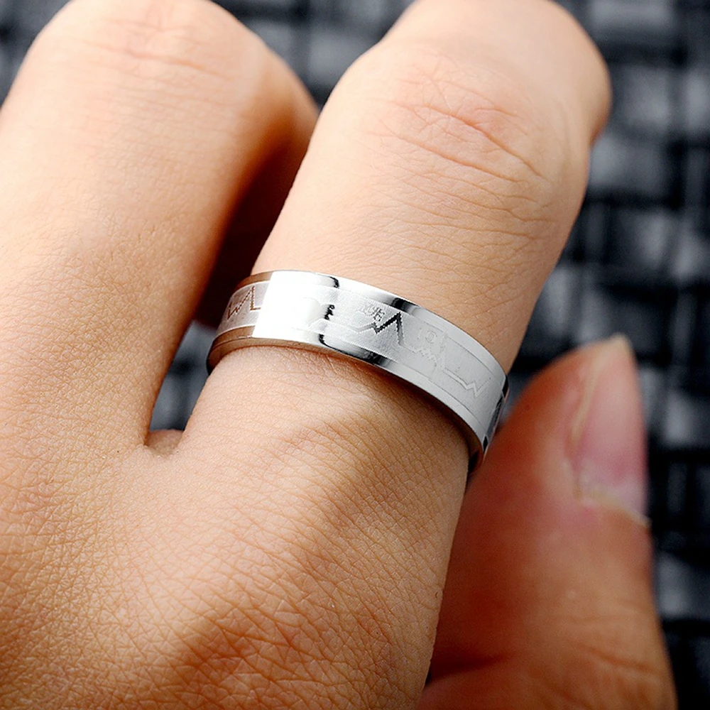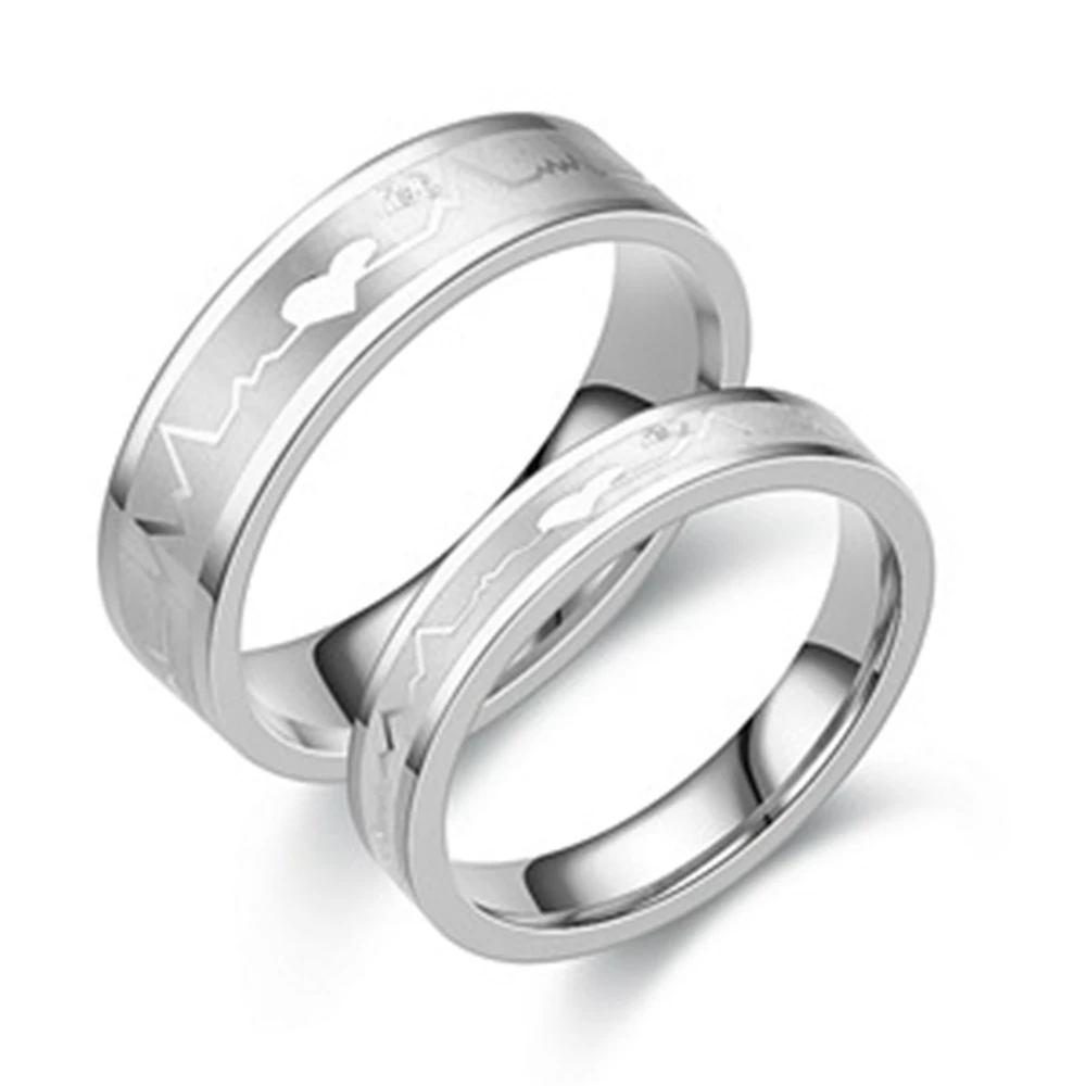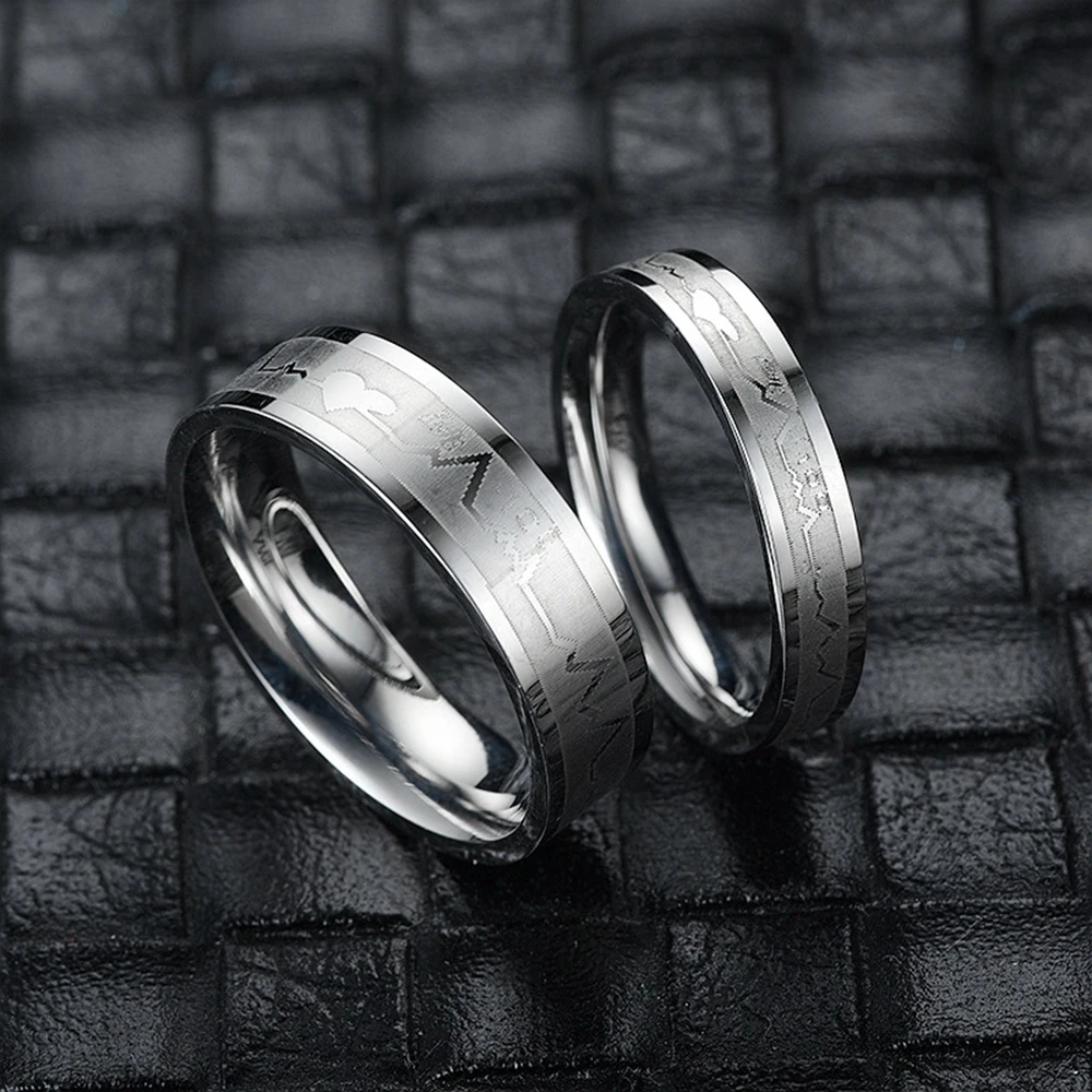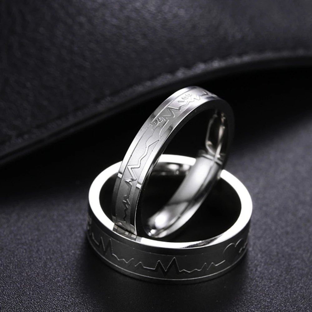 Модные парные кольца из титановой стали с ЭКГ, кольца в форме сердца из титановой стали для мужчин и женщин, обручальные кольца, ювелирные изделия