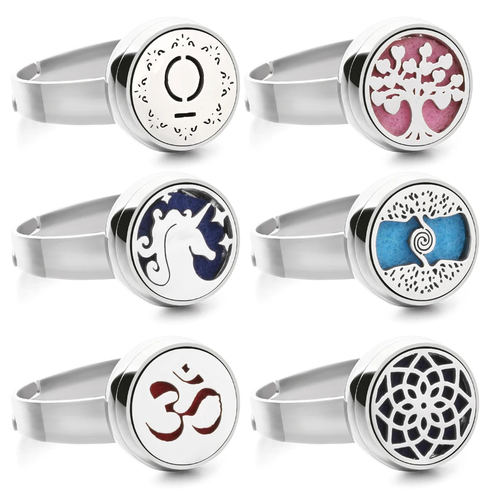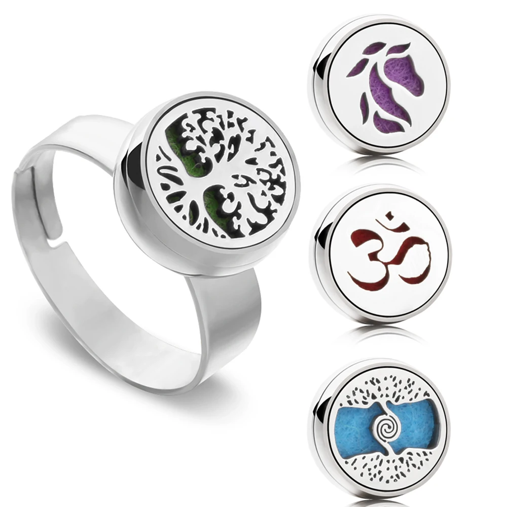 Ароматерапия ювелирные кольца 12 мм эфирное масло диффузор медальон кольцо из нержавеющей стали дерево лошадь цветок мини регулируемое Открытое кольцо