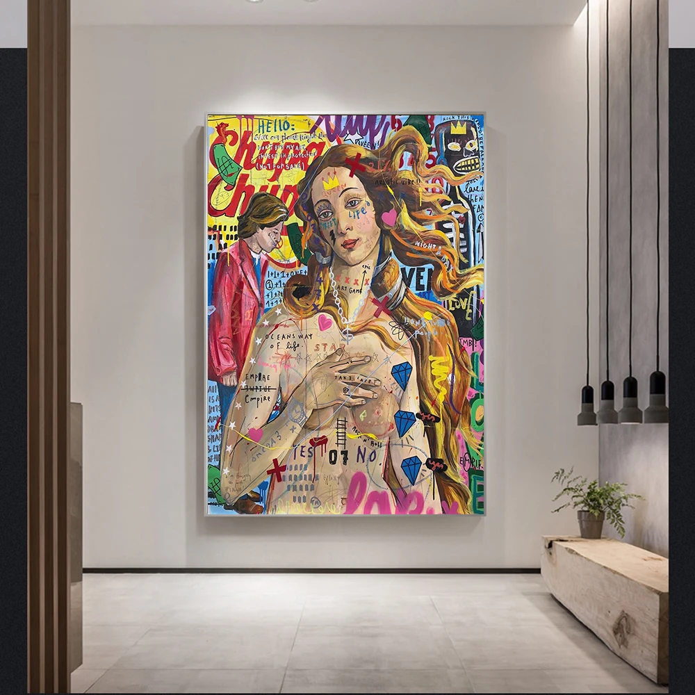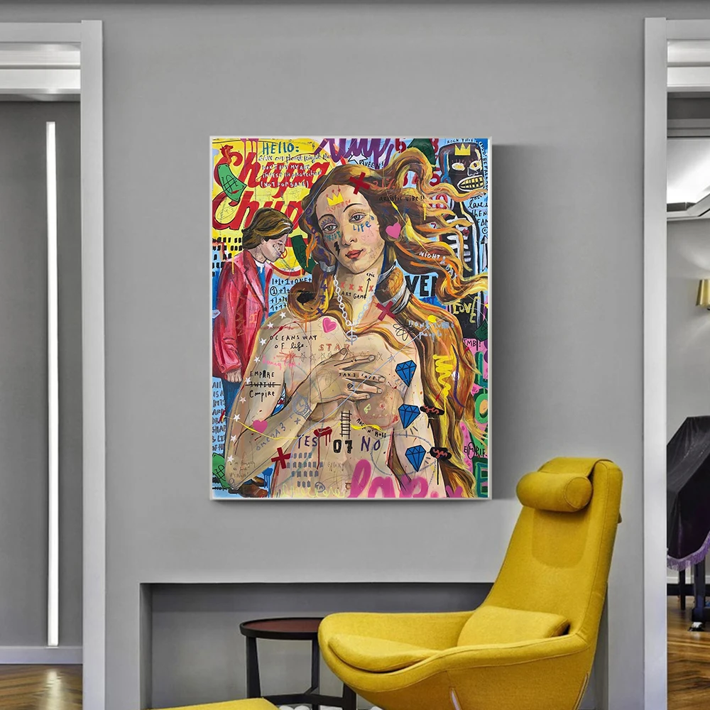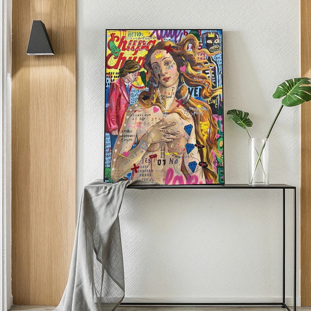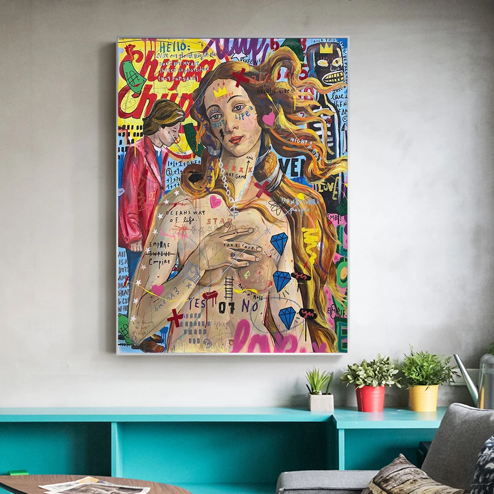 Граффити известное искусство Рождение Венеры плакат и печать на стене картина маслом на холсте художественная картина для гостиной домашний декор