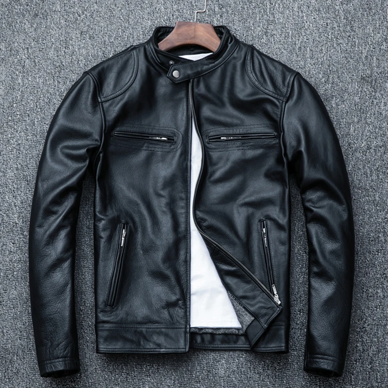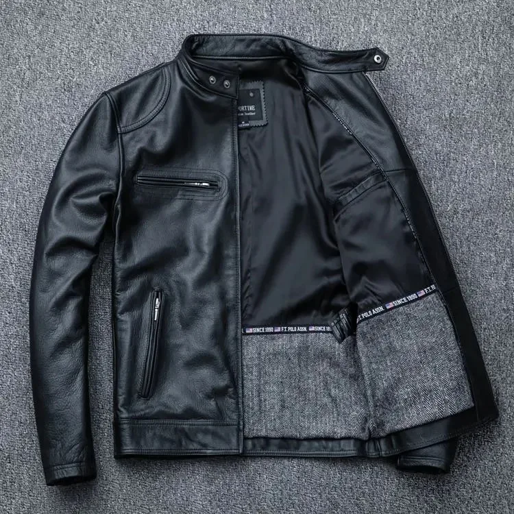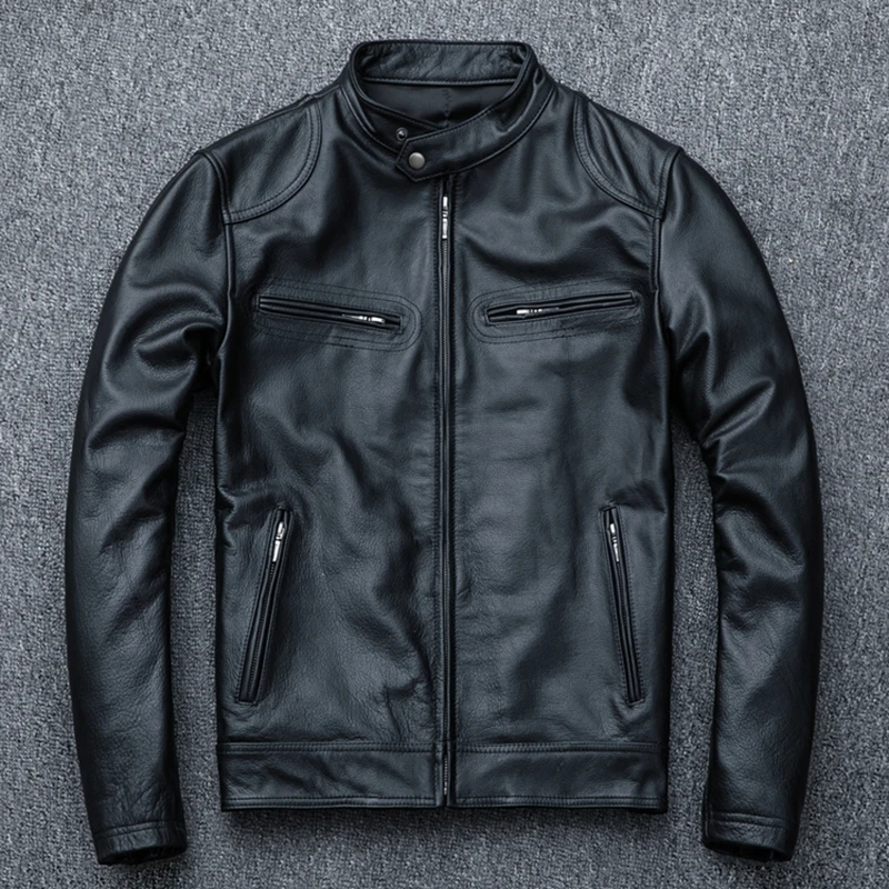 2021 весенние мотоциклетные мужская кожаная куртка из натуральной кожи теплые Slim короткое пальто мото натуральной телячьей кожи одежда Размеры S-5XL