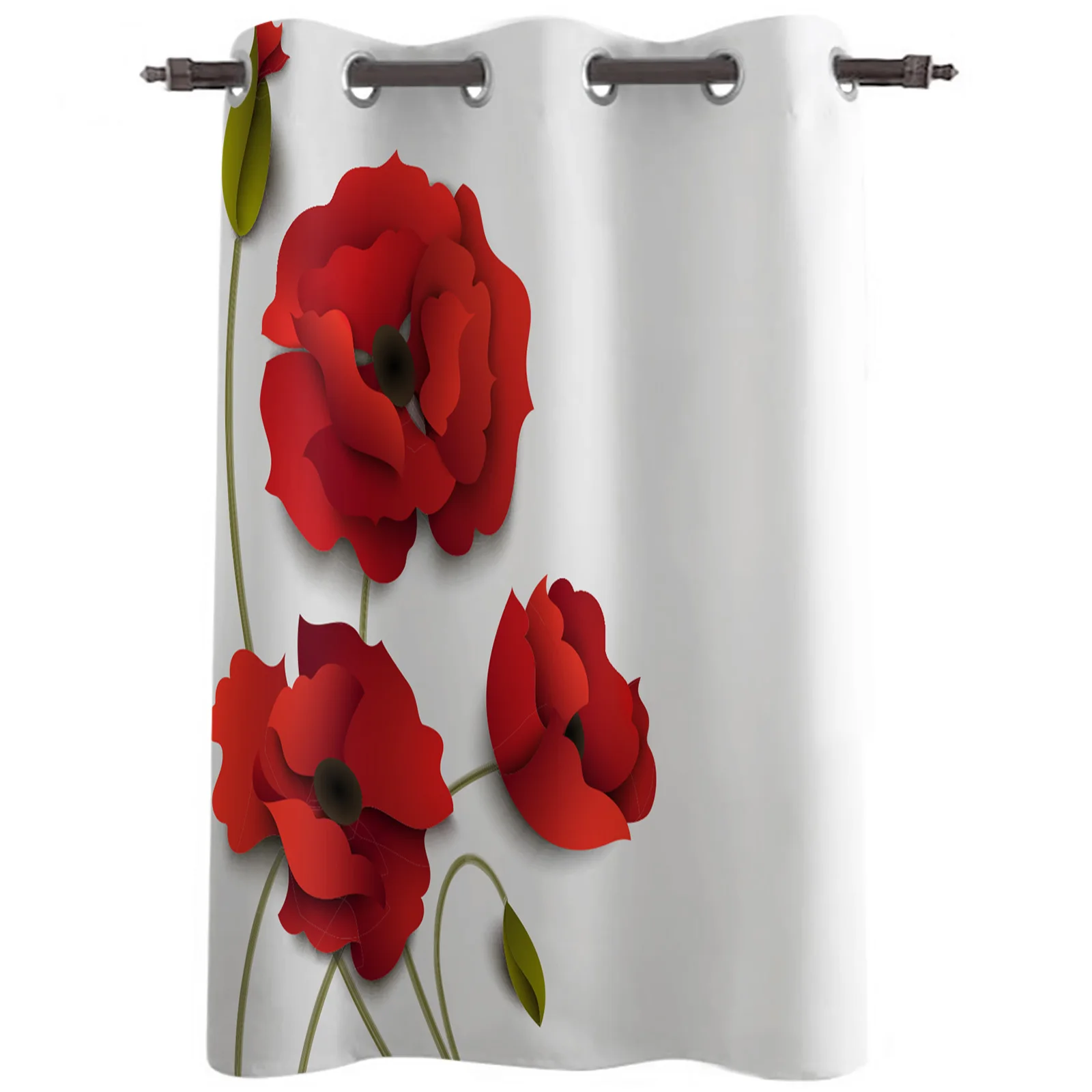 Красный цветок макового цветка окна занавески для гостиной фотообои...