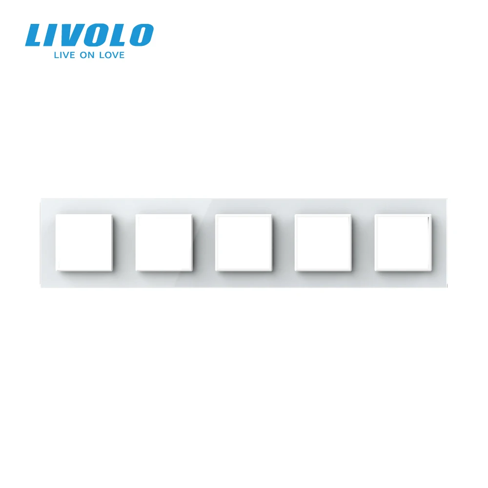 Панель переключателей Livolo из хрустального стекла, стандарт ЕС, 364 мм х 80 мм, пятиугольная стеклянная панель для настенной розетки C7-5SR-15