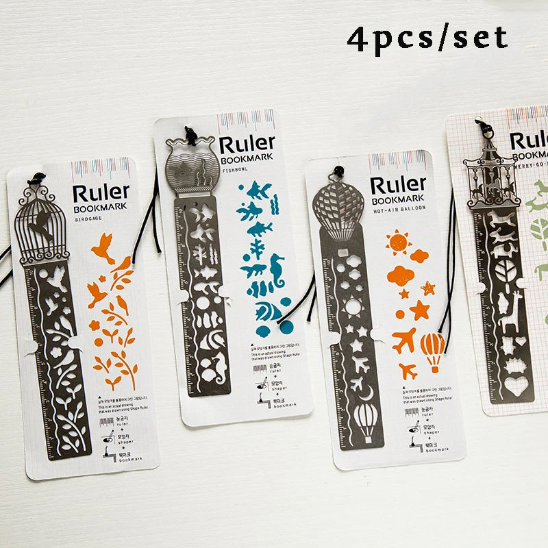 4 шт. Милая клетка для птиц, полые металлические закладки, кавайные полые линейки, сделай сам, запись, ежедневные шаблоны для детей, подарок, школьные принадлежности