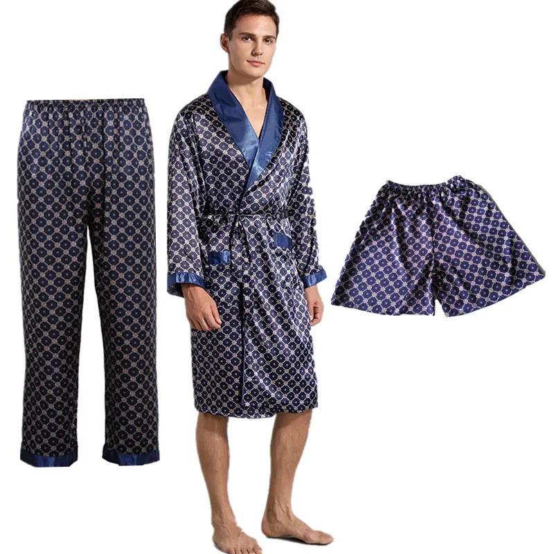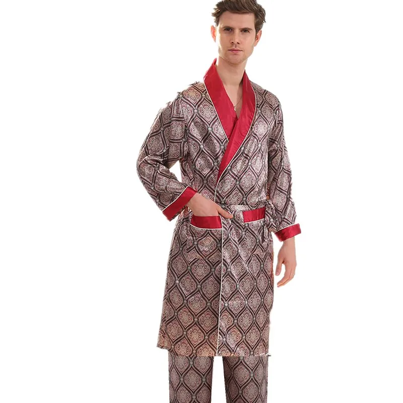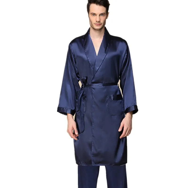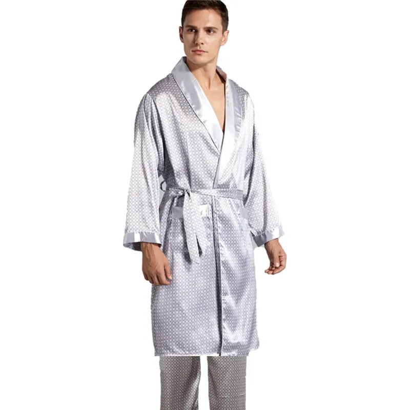 Plus Size Bathrobes Male,Satin Sleepwear Nightgown