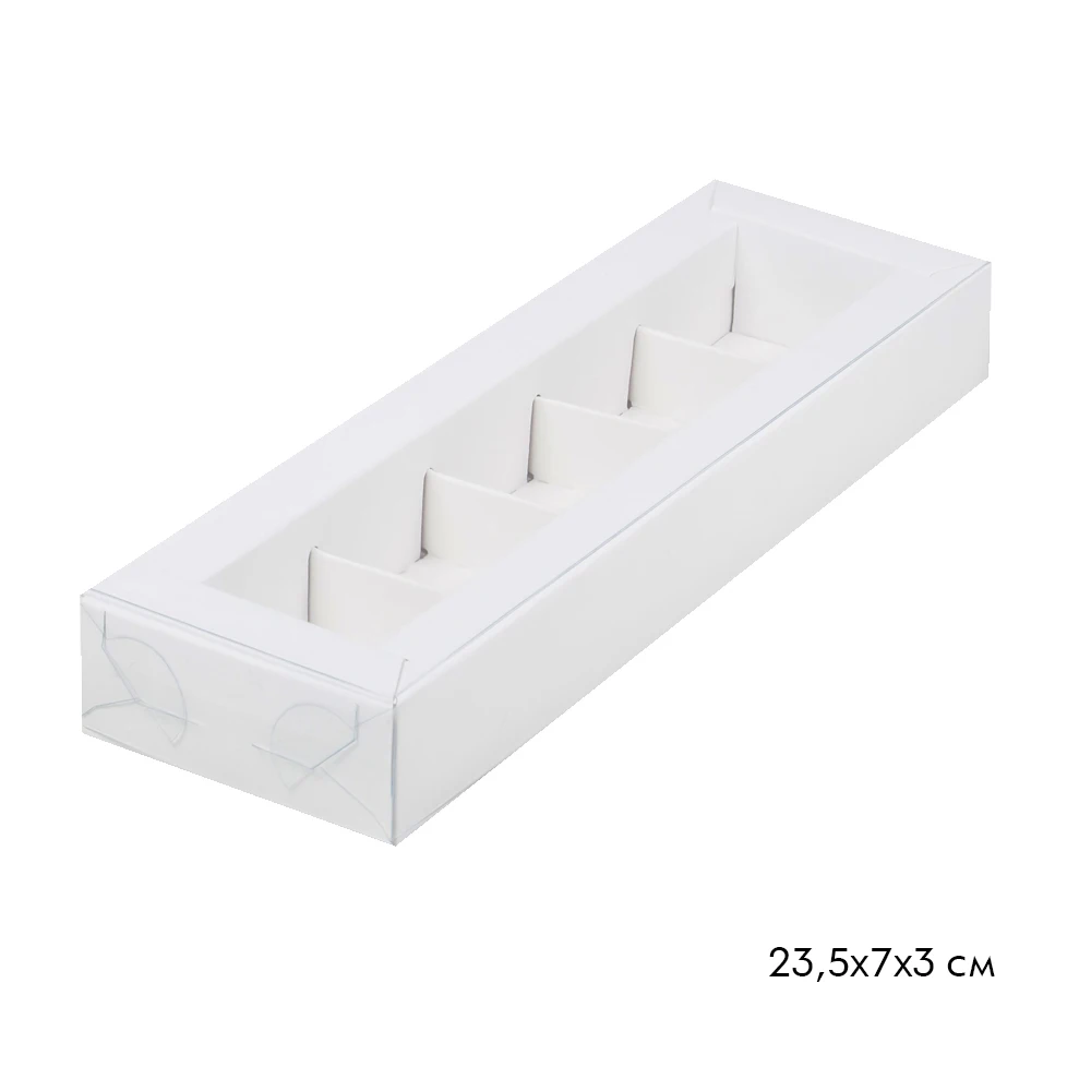 Коробка самосборная, не требующая дополнительного скрепления. Собирается очень легко.Крышка и дно раздельные. Имеется отдельный вкладыш-разделитель. Дно ивкладыш изготовлены из белого глянцевого целлюлозного картона, крышка из ПЭТ-пластика.
