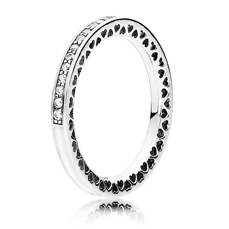 Аутентичное женское серебряное кольцо с блестящими сердечками, коль...