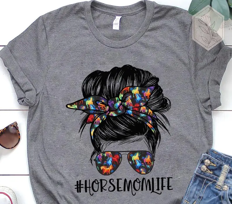 День матери лошадь Мама Жизнь любителей лошадей очки Футболка для детей с короткими рукавами футболки модные 100% хлопок футболки с круглым вырезом Женская одежда повседневные рубашки для мальчиков