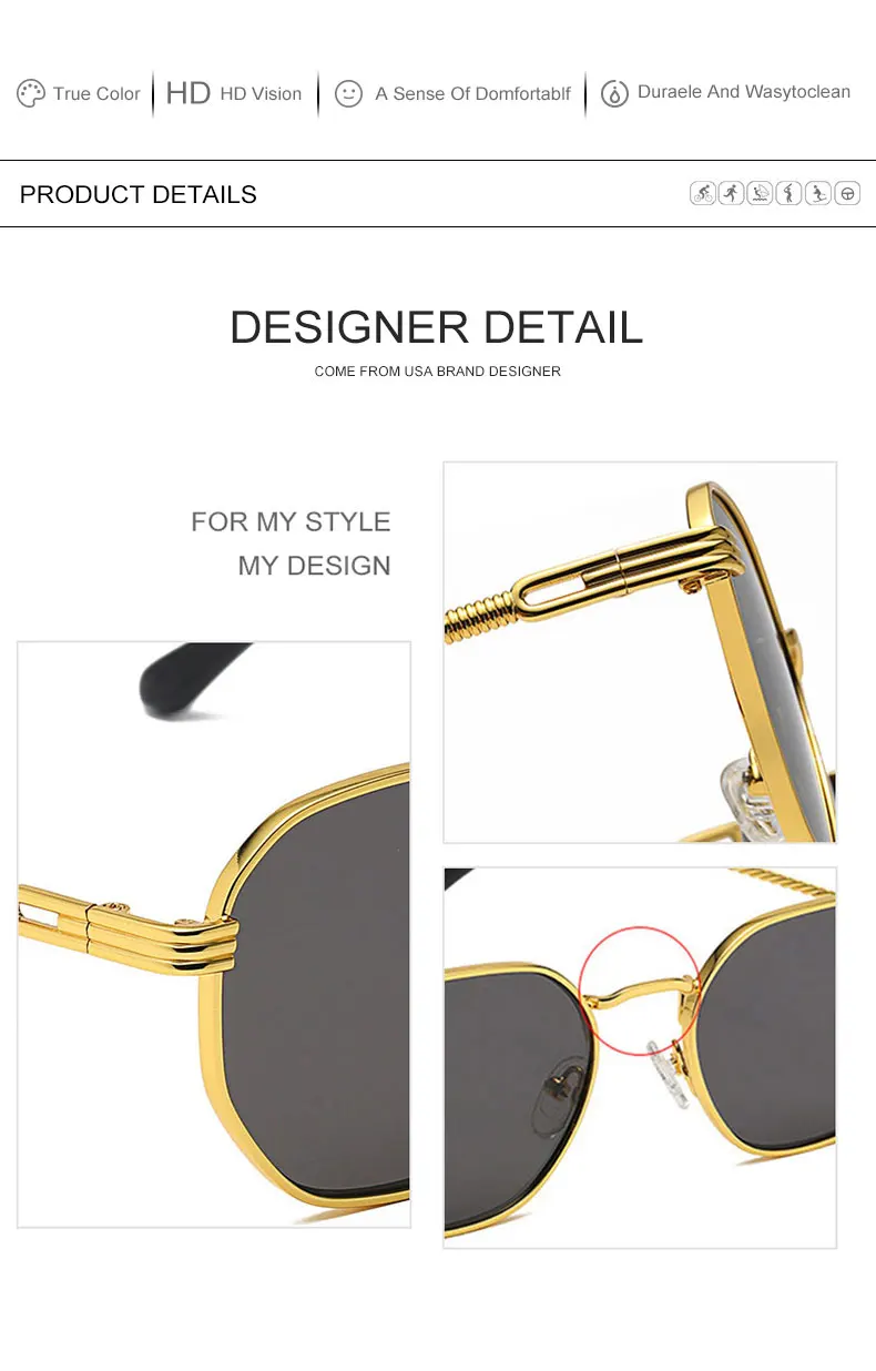 Солнцезащитные очки HBK в металлической квадратной оправе UV400 для мужчин и женщин, винтажные зеркальные солнечные аксессуары синего и зеленого цвета в золотой оправе, 2021