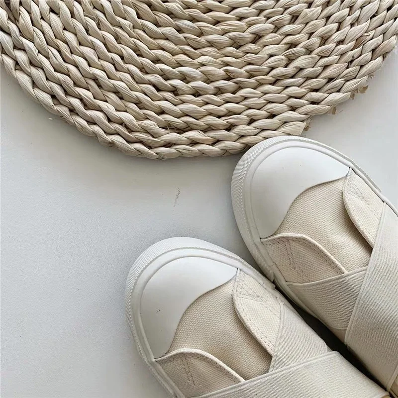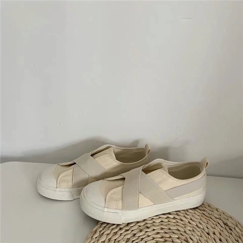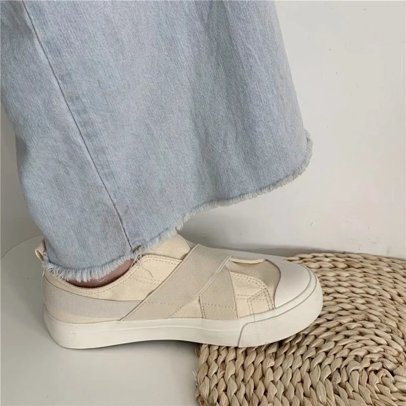 Женские холщовые кроссовки QWEEK, Вулканизированная подошва, резиновая подошва, без шнуровки, повседневные, для бега, аниме, белые, на весну