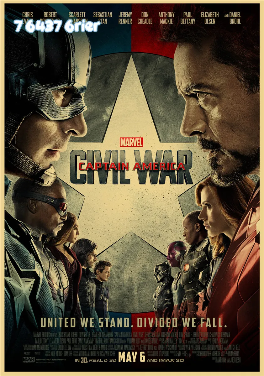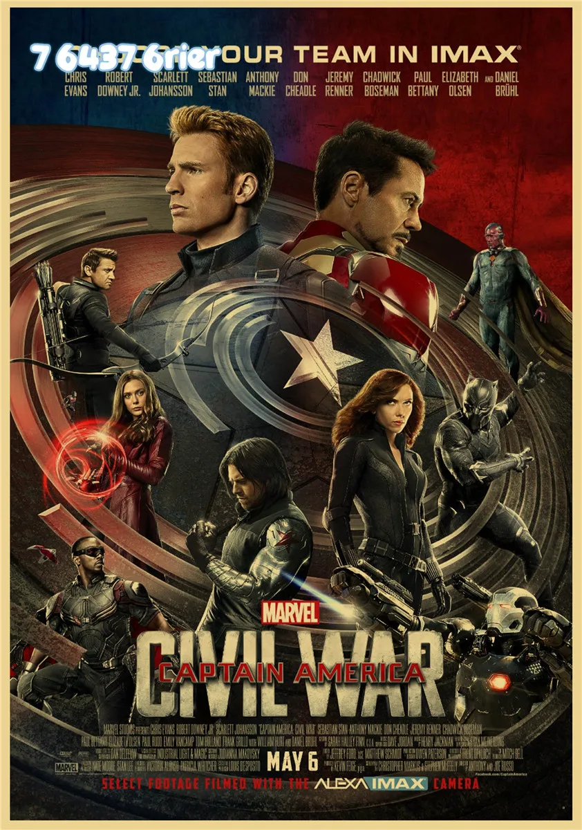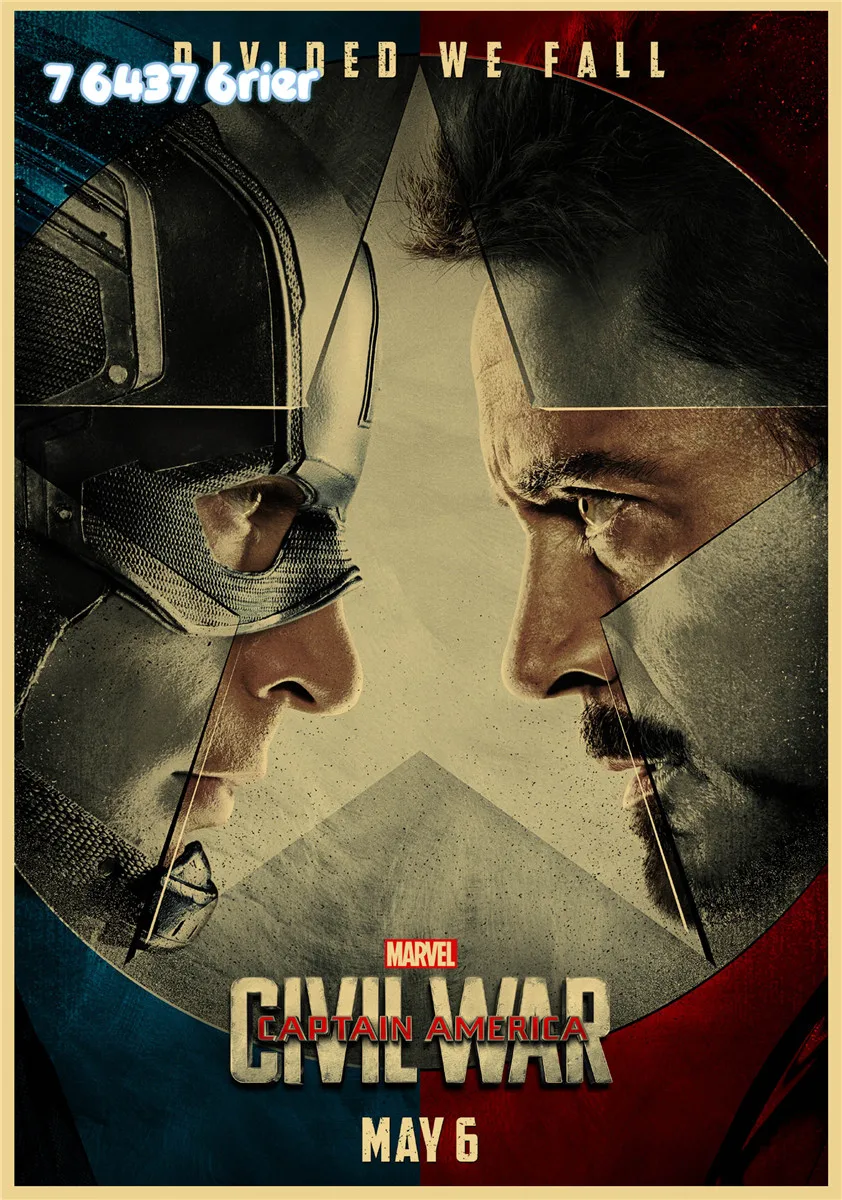 Мстители Капитан Америка серия Marvel фильм железный человек в стиле ретро из крафт-бумаги Бумага плакат супергероя стены дома, ручной стержень, для кафе, для стены Стикеры