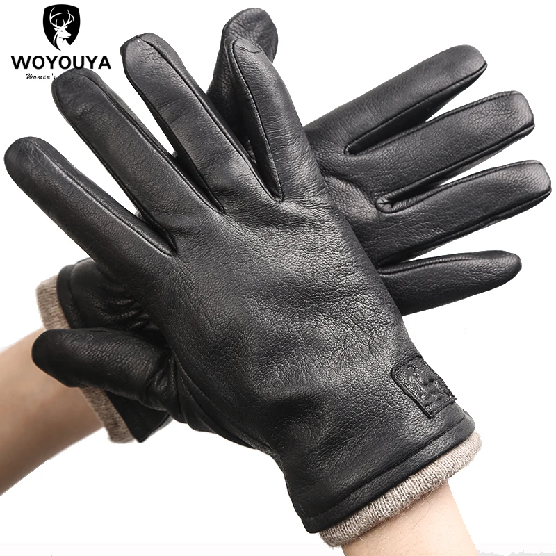 Зимние черные мужские перчатки из натуральной кожи, сохраняют тепло, мужские зимние перчатки, простые мужские кожаные перчатки из оленьей кожи