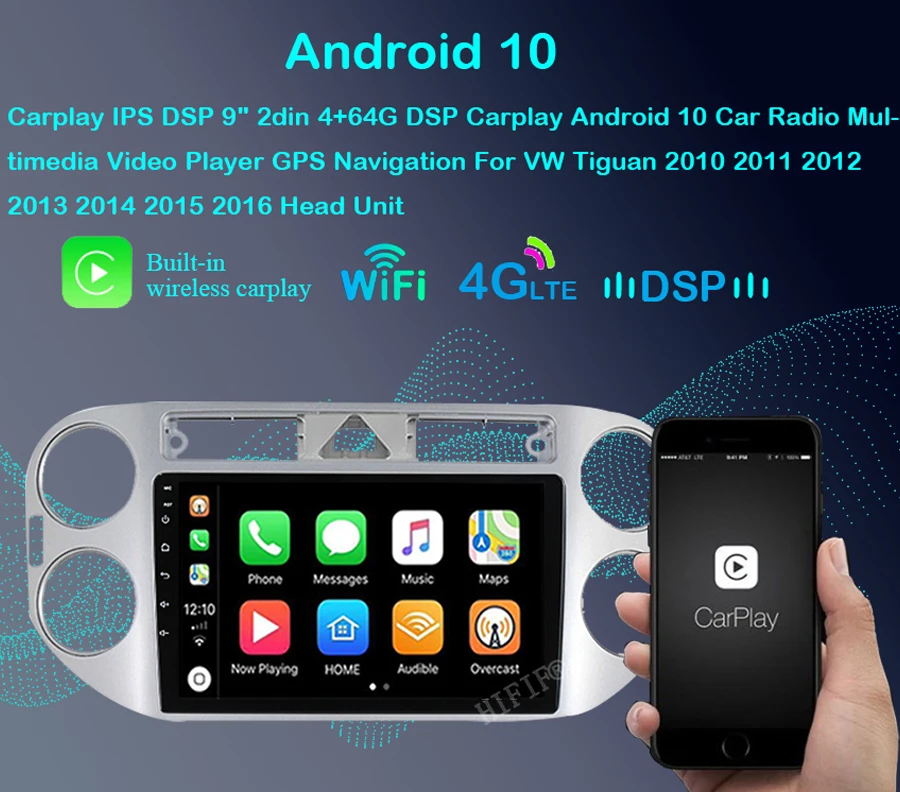 4G 8-ядерный автомобильный радиоприемник, мультимедийный видеоплеер для VW Tiguan 2010, 2011, 2012, 2013, 2014, 2015, 2016, Android 10, GPS-навигатор