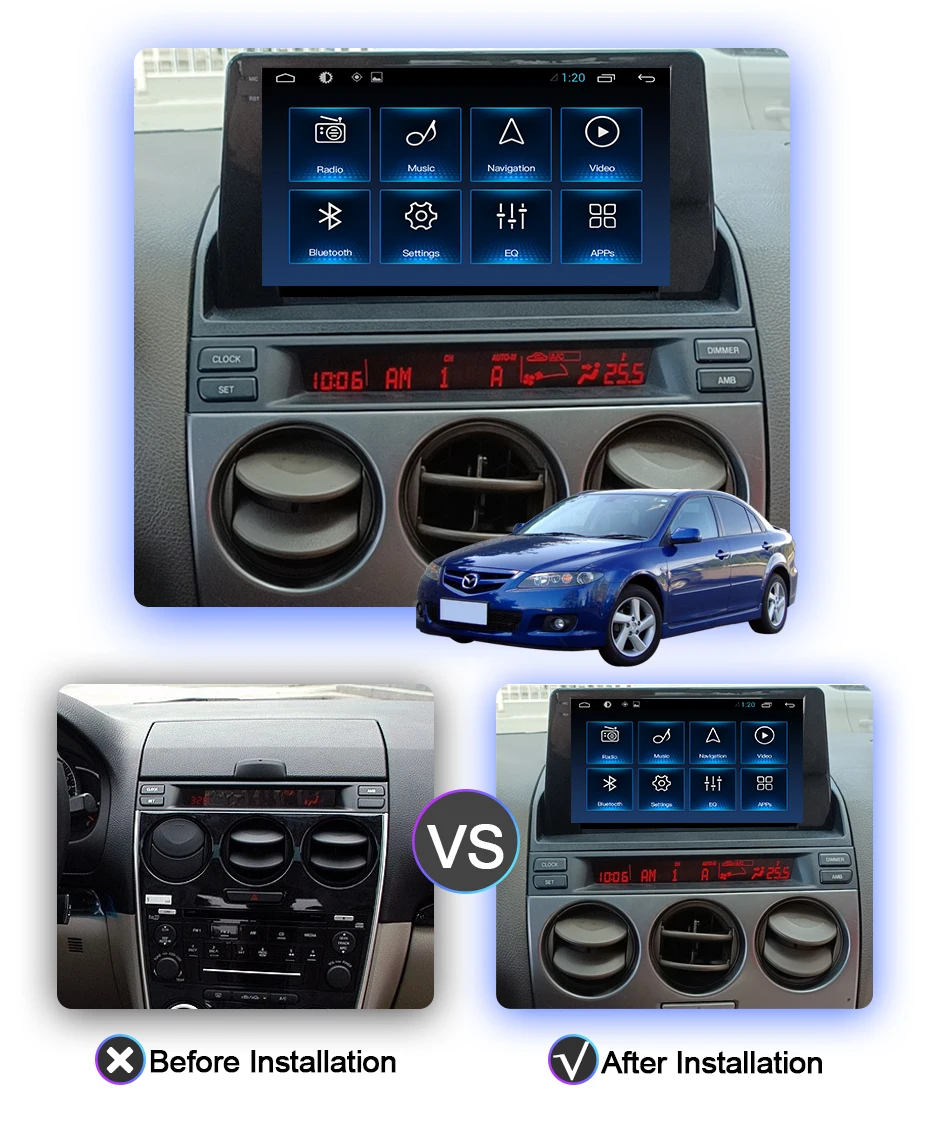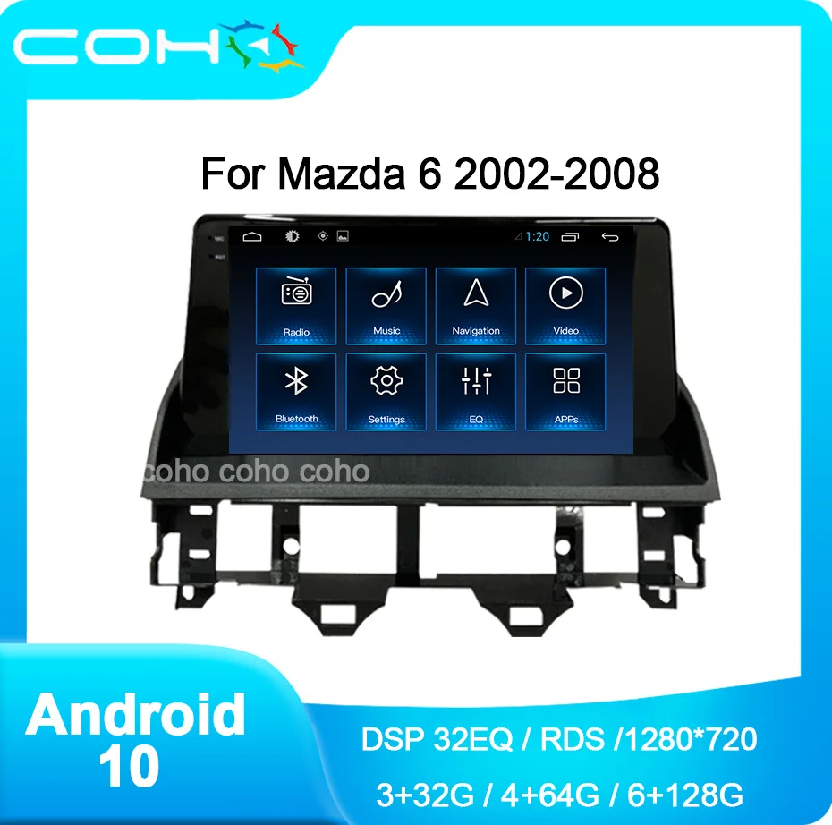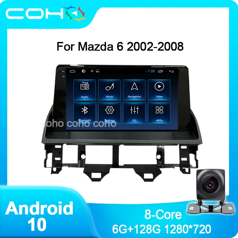 Автомобильный радиоплеер COHO для Mazda 6 2002-2008, Android 10,0, 4G, навигация, GPS, Восьмиядерный процессор, 6 ГБ + 128 Гб, радио, мультимедиа