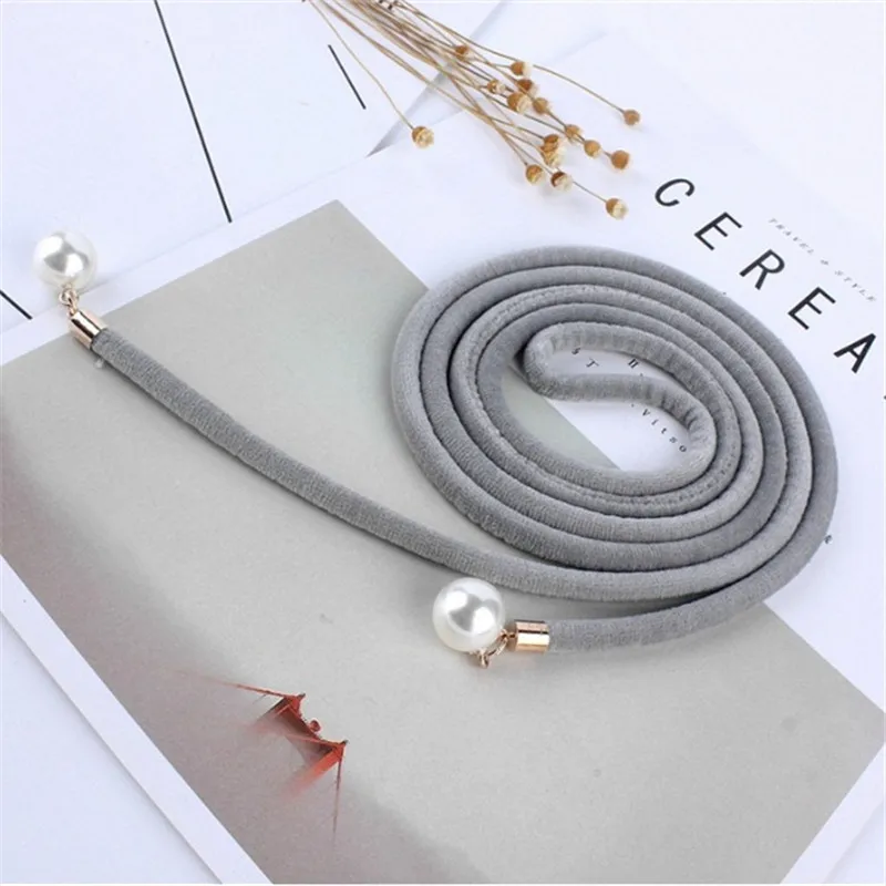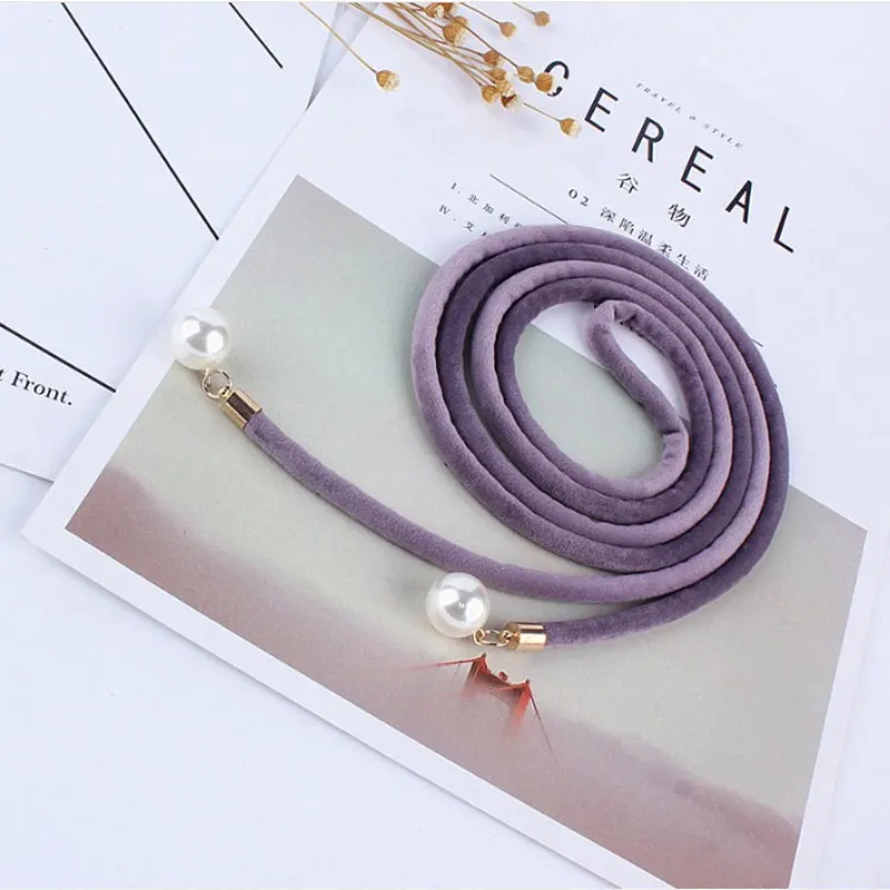 Женский винтажный пояс с узлом, тонкий черный пояс с бахромой и жемчужинами в стиле ретро