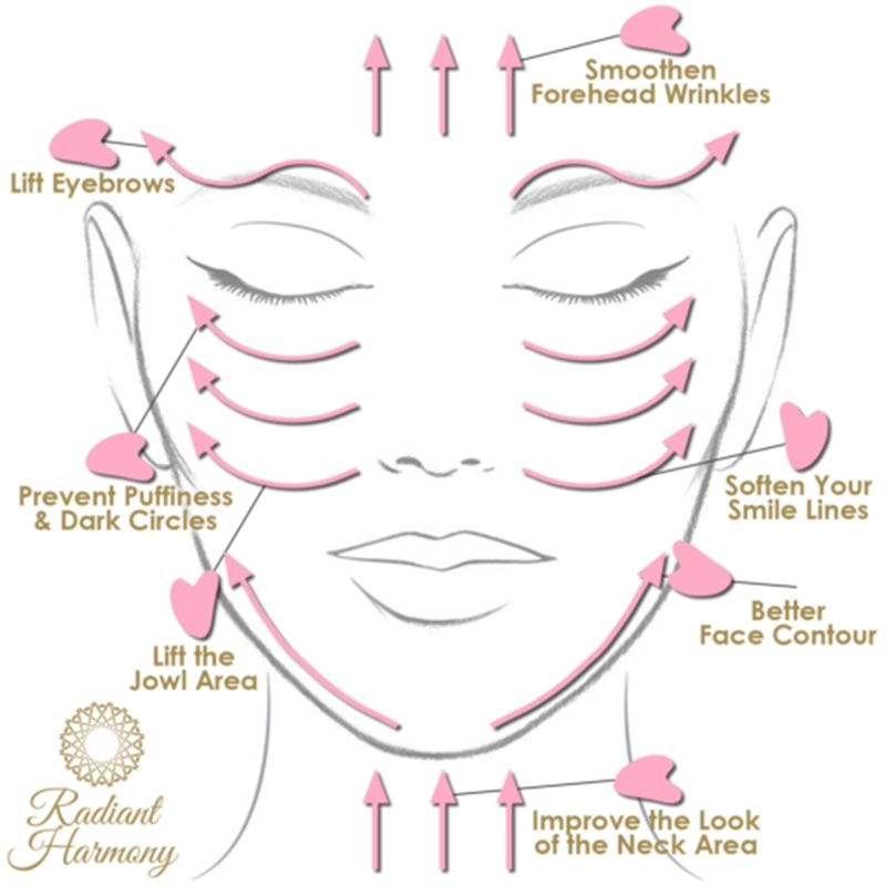 + Возьмите инструмент Gua Sha и надавите на лицо нежными движениями вверх (следуйте инструкциям, включенным в вашу покупку).
