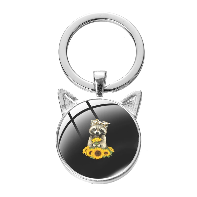 Брелок с енотом SIAN, металлический брелок с принтом диких животных, модный стеклянный кабошон в форме кошачьих ушей, подвеска для мужчин и женщин