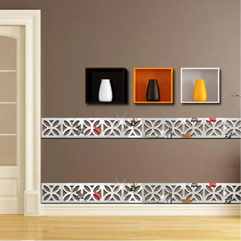 100200500 шт. 5*5 см Зеркальная Наклейка для здания, 3D линия талии, акриловая зеркальная Настенная Наклейка s для гостиной, домашний декор
