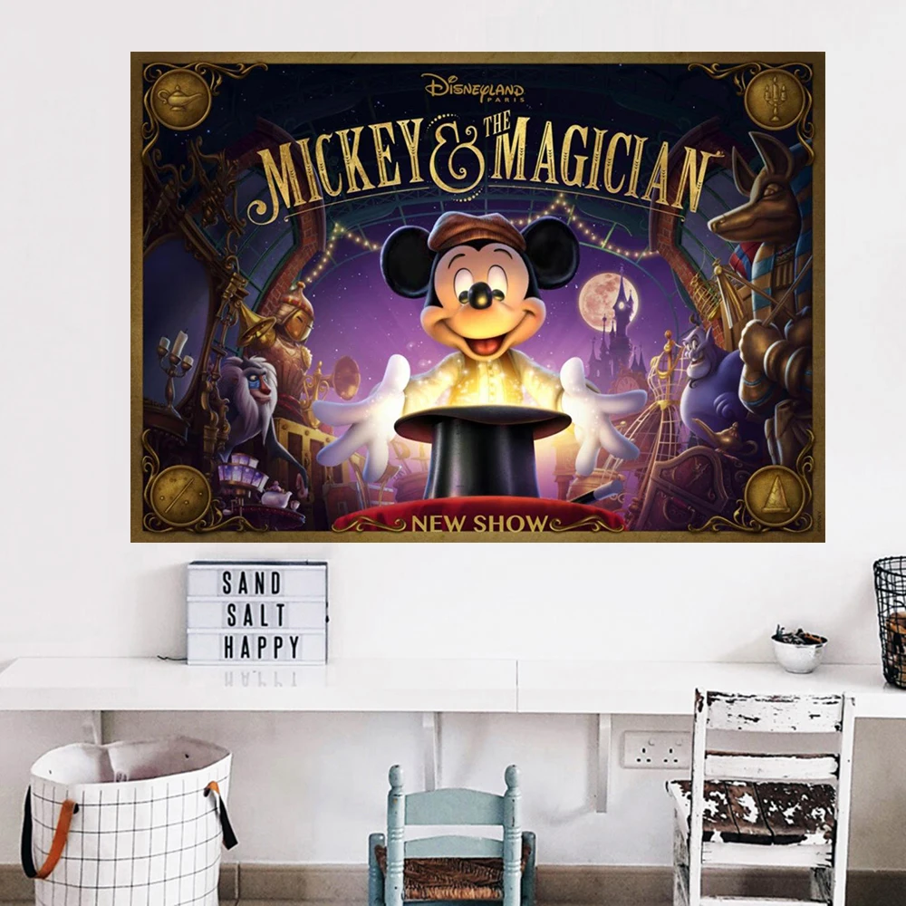 Постер с изображением Микки Мауса и друзей Диснейленда, мультяшный магический пейзаж, Картина на холсте, настенное искусство, украшение для детской комнаты и дома