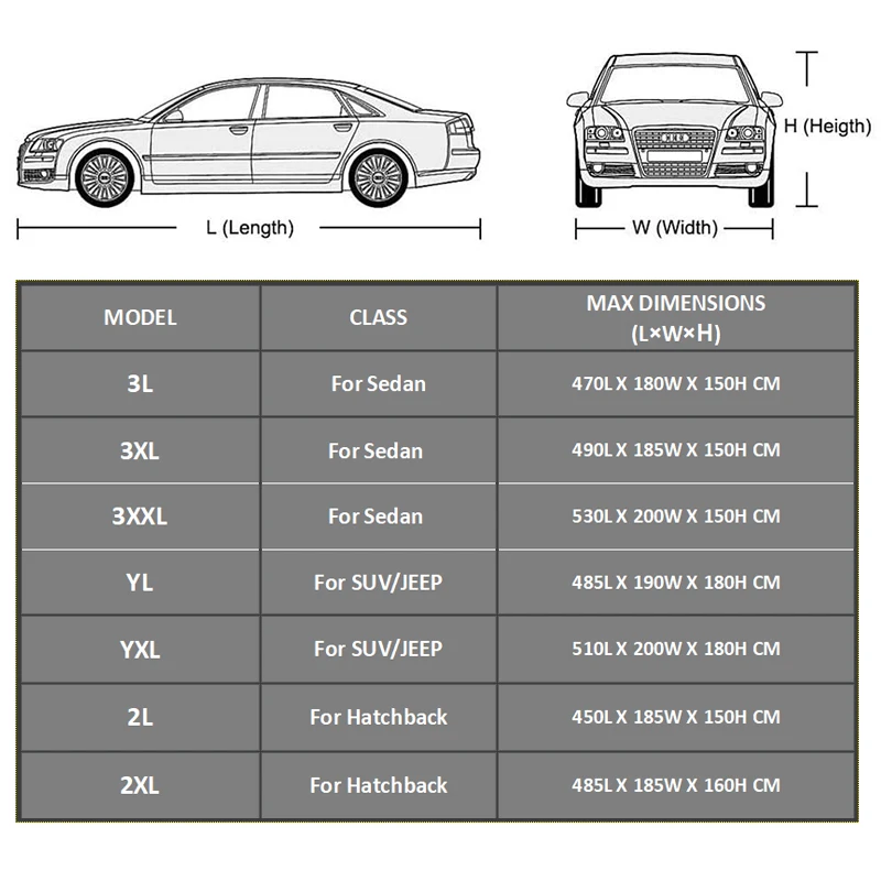 Если вы все еще не знаете длину вашего автомобиля, вы можете погуглить его или связаться с нами. Сообщите нам марку автомобиля и модель, мы поможем вам.