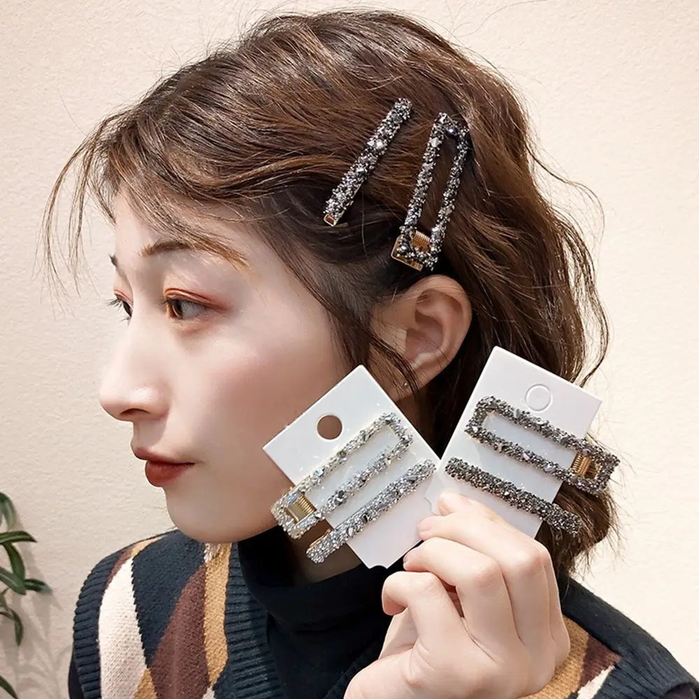 2 шт.компл. Прямоугольный в Корейском стиле популярные заколки для волос модные женские Стразы Роскошные блестящие заколки для волос заколка для галстука зажим Инструменты для укладки волос заколки