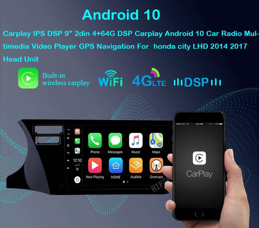 Автомобильный gps-проигрыватель, 9 дюймов, android 10,0 RAM 2G, dvd-плеер для honda city LHD 2014 2017, автомобильное радио, мультимедийная навигация, стерео, головное устройство dsp