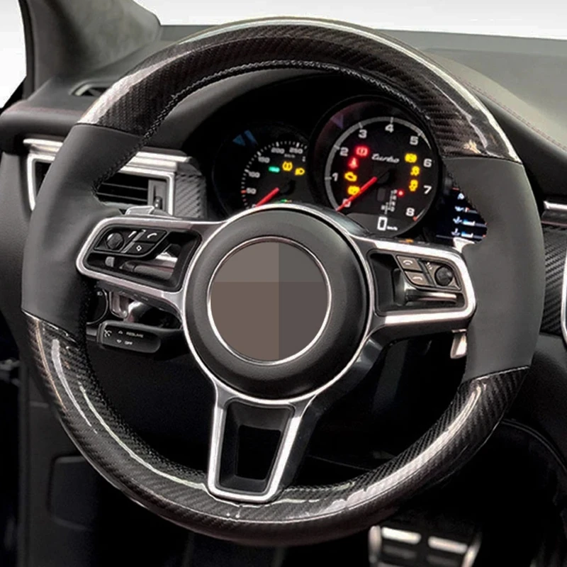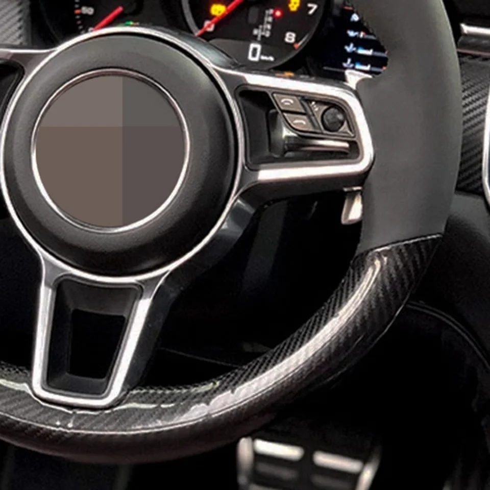 Чехол рулевого колеса автомобиля ручная сшивка нескользящего черного графита волокна Черная замша для Porsche Macan Boxter Cayenne 2015-2016