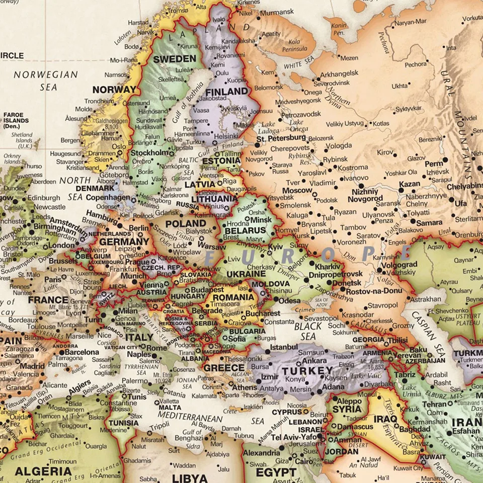 225*150 см Европейская политическая карта Нетканая Картина на холст...