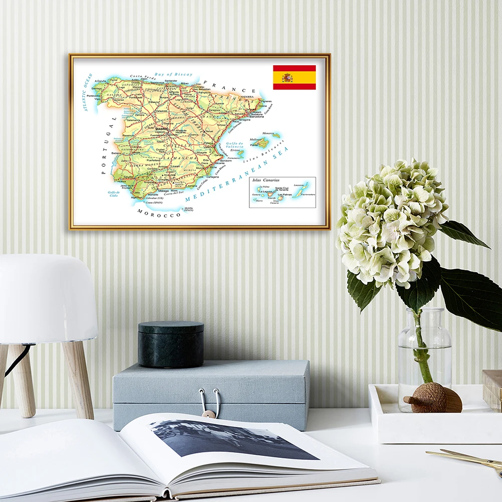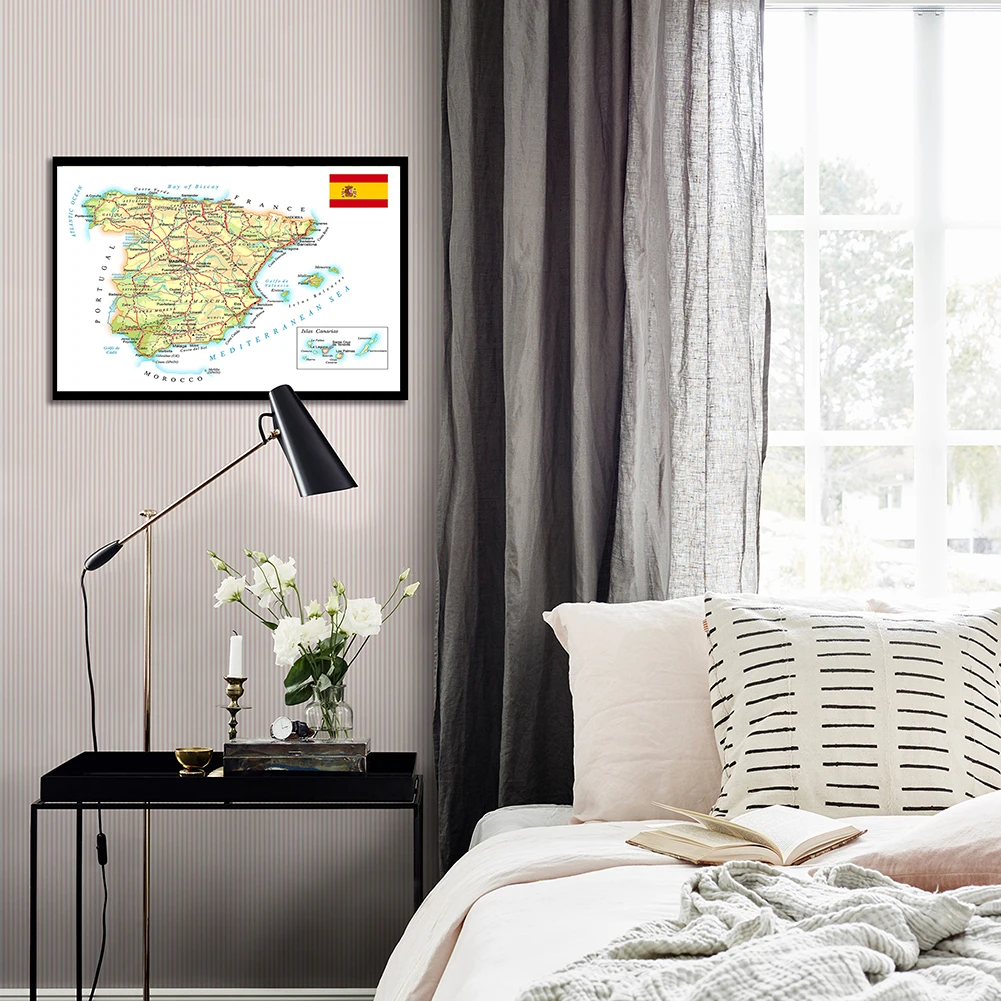 59*42 см карта Испании (в испанском) настенный постер, холст, живопись, гостиная, домашний декор, школьные принадлежности, подарок для путешествий