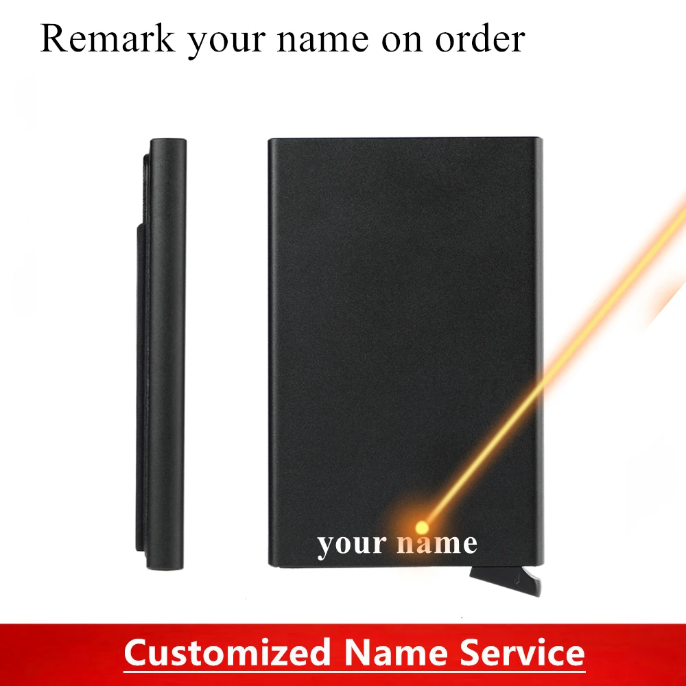 Алюминиевый мини-кошелек с задней крышкой, держатель для карт, денег, удостоверения личности, Тонкий RFID-кошелек, автоматический выдвижной чехол для банковских карт, Индивидуальная коробка