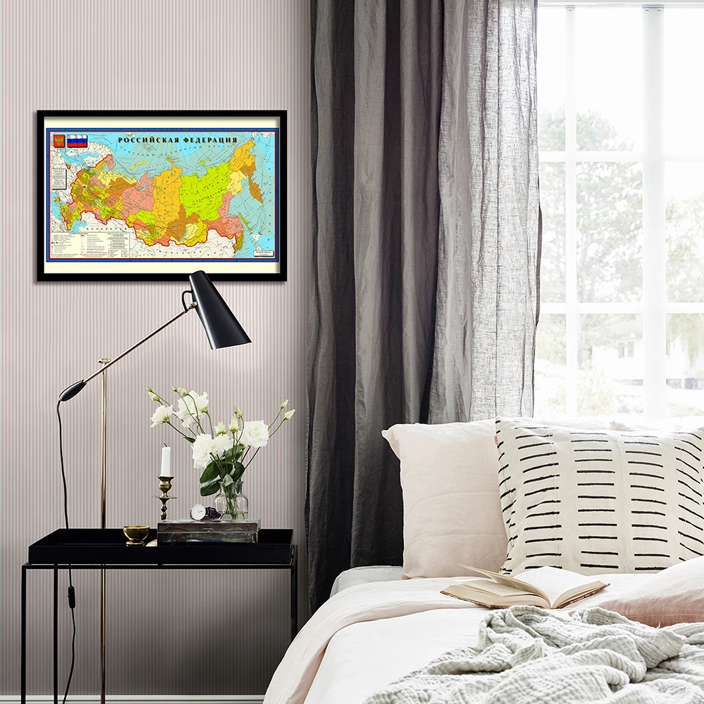 Настенный постер 59 х42 см на русском языке с политической картой России с государственным флагом, Картина на холсте, школьные принадлежности, украшение для дома
