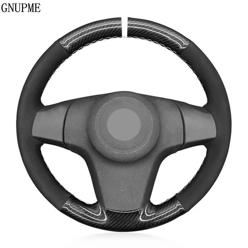 Черный углеродного волокна Черная замша чехол рулевого колеса автом...