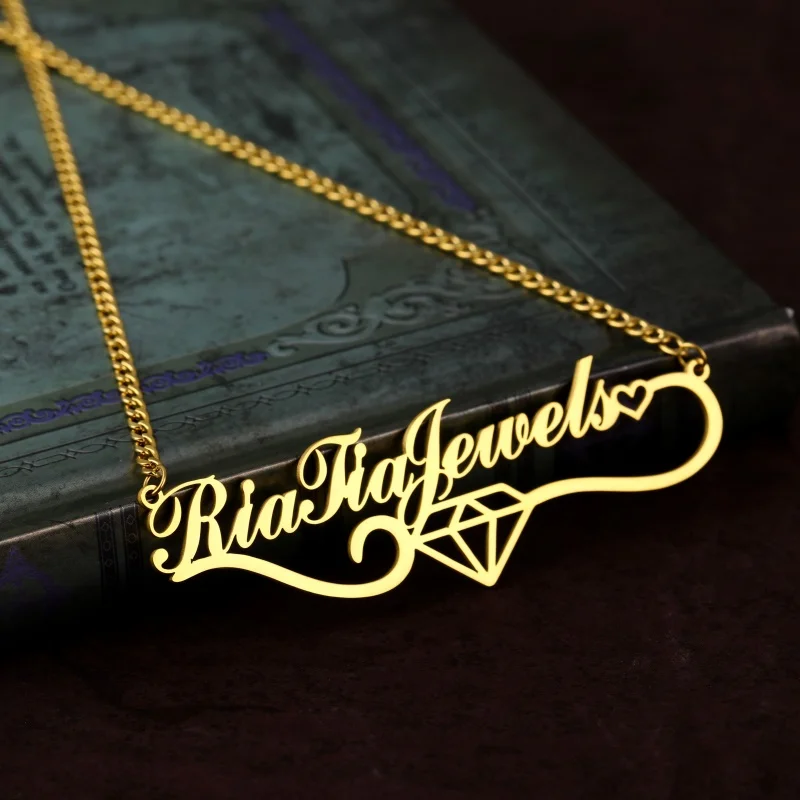 Ожерелья с именем на заказ для женщин, персонализированная золотая цепочка из нержавеющей стали 3 мм, кубинская цепь, кулон-табличка с именем ожерелье, ювелирные изделия