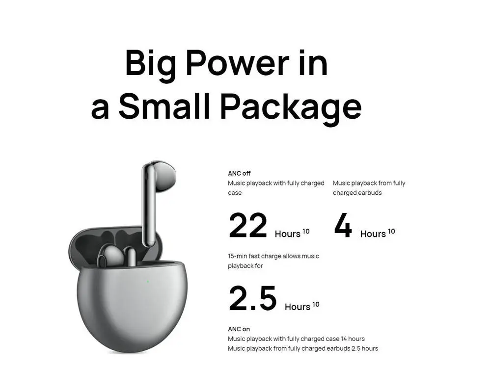 Воспроизведение музыки на 1 зарядки: 2,5 часов (с ANC включен) **