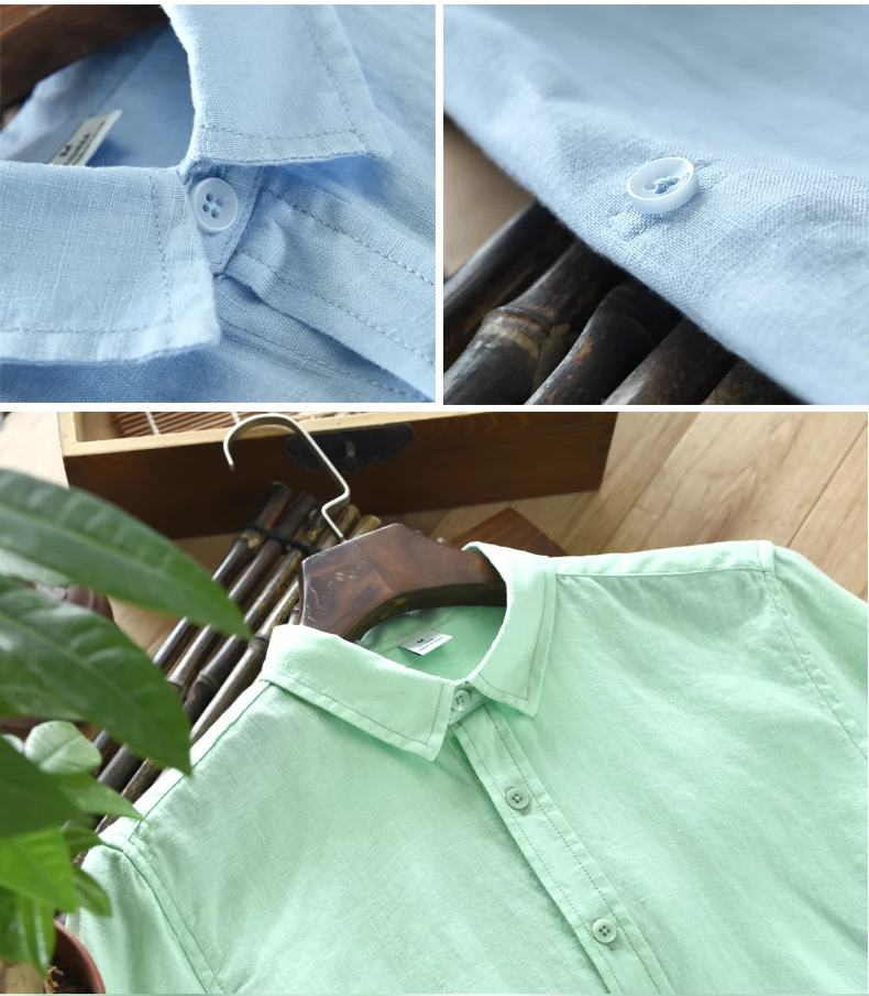 Мужская рубашка с длинными рукавами, из 100% чистого льна, Мужская ...