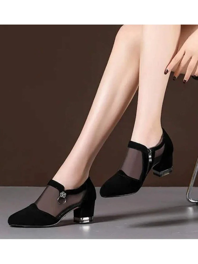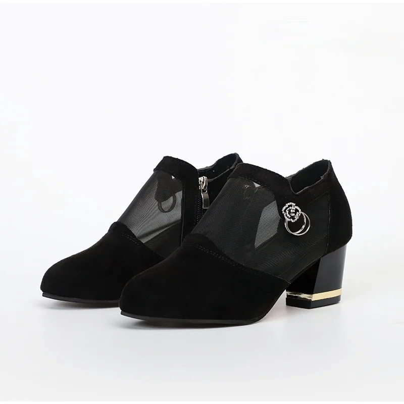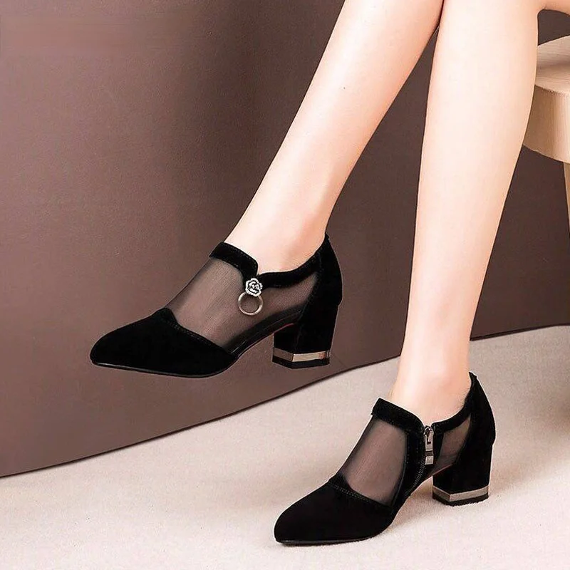 Женские туфли на высоком каблуке, сетчатые дышащие туфли-лодочки, на молнии, с острым носком, на толстом каблуке, модная женская классическая обувь, новинка, размер 43