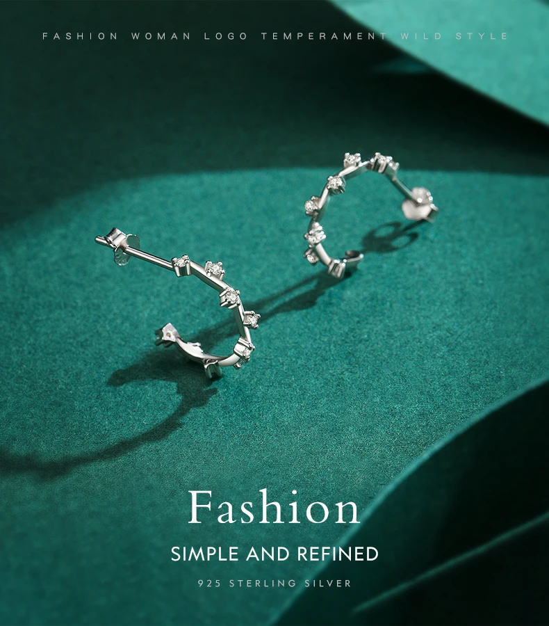 Серьги-гвоздики женские гипоаллергенные из серебра 925 пробы с плат...