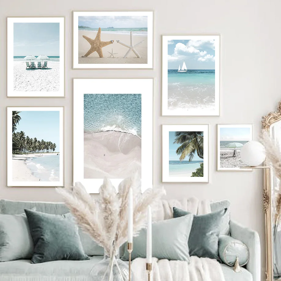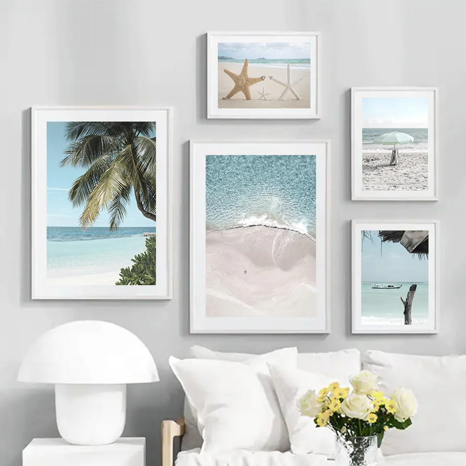 Морской пляжный зонт Морская звезда парусная лодка Пальма настенная Картина на холсте скандинавские плакаты и принты настенные картины для декора гостиной