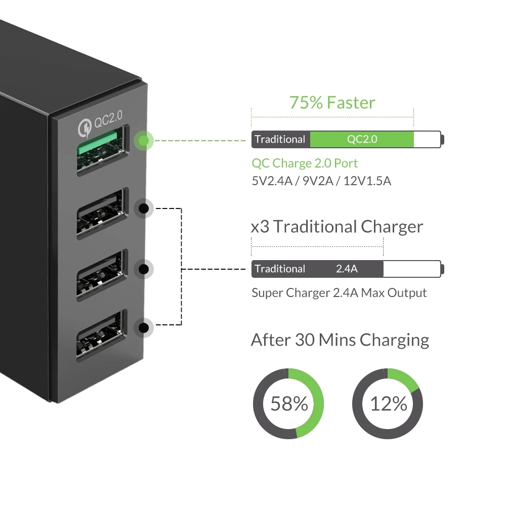 Быстрое зарядное устройство ORICO QC2.0 с 4 портами USB, настольное зарядное устройство 34 Вт, 5 В, 2,4 А, зарядная станция для мобильных телефонов и планшетов для iPhone, Samsung, Xiaomi