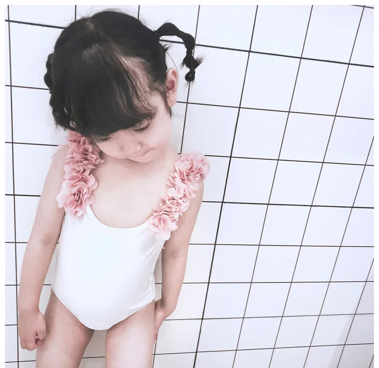 Цельный купальник для маленьких девочек, купальный костюм с цветочн...